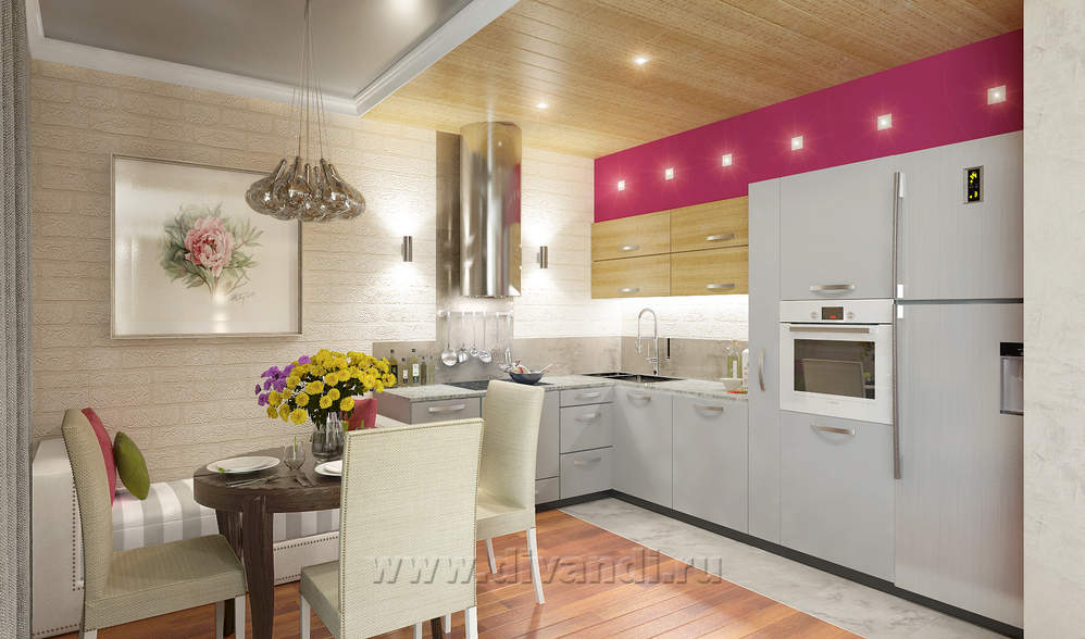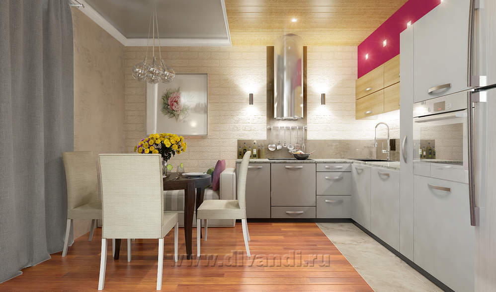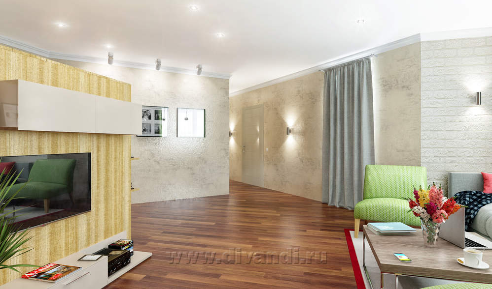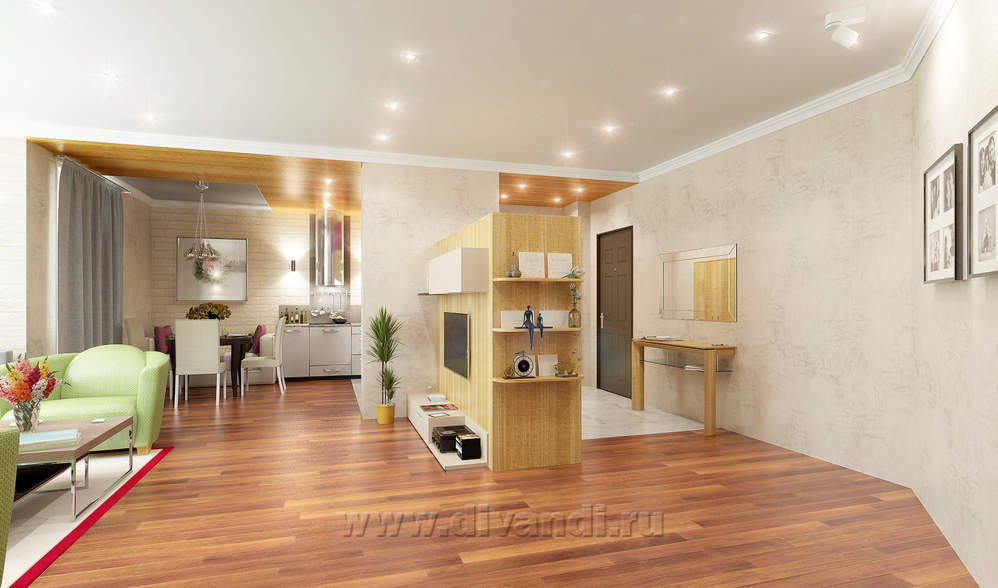 Объединенная кухня-гостиная в новом доме на Ботанике.