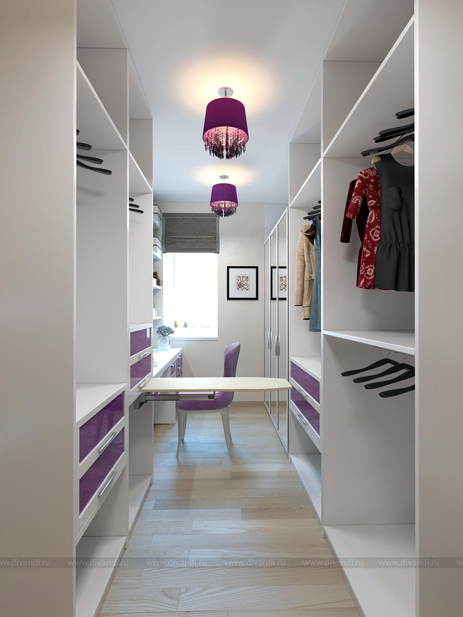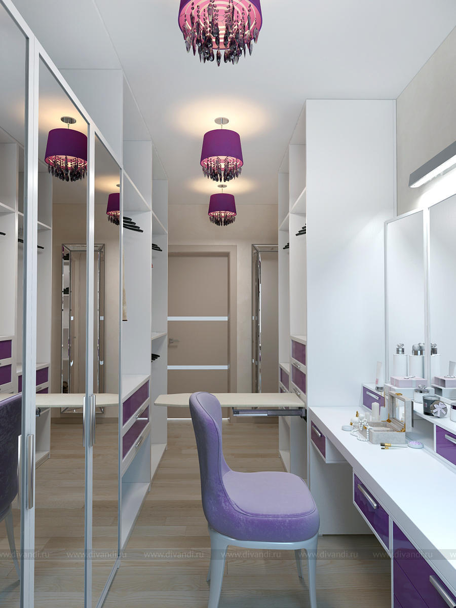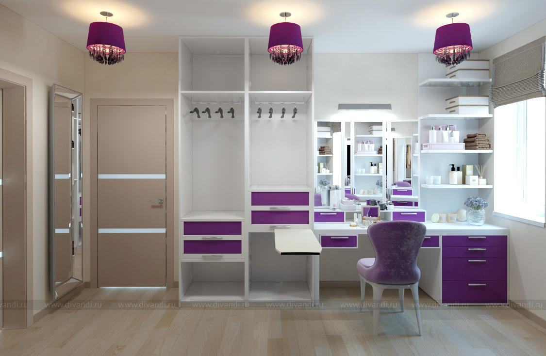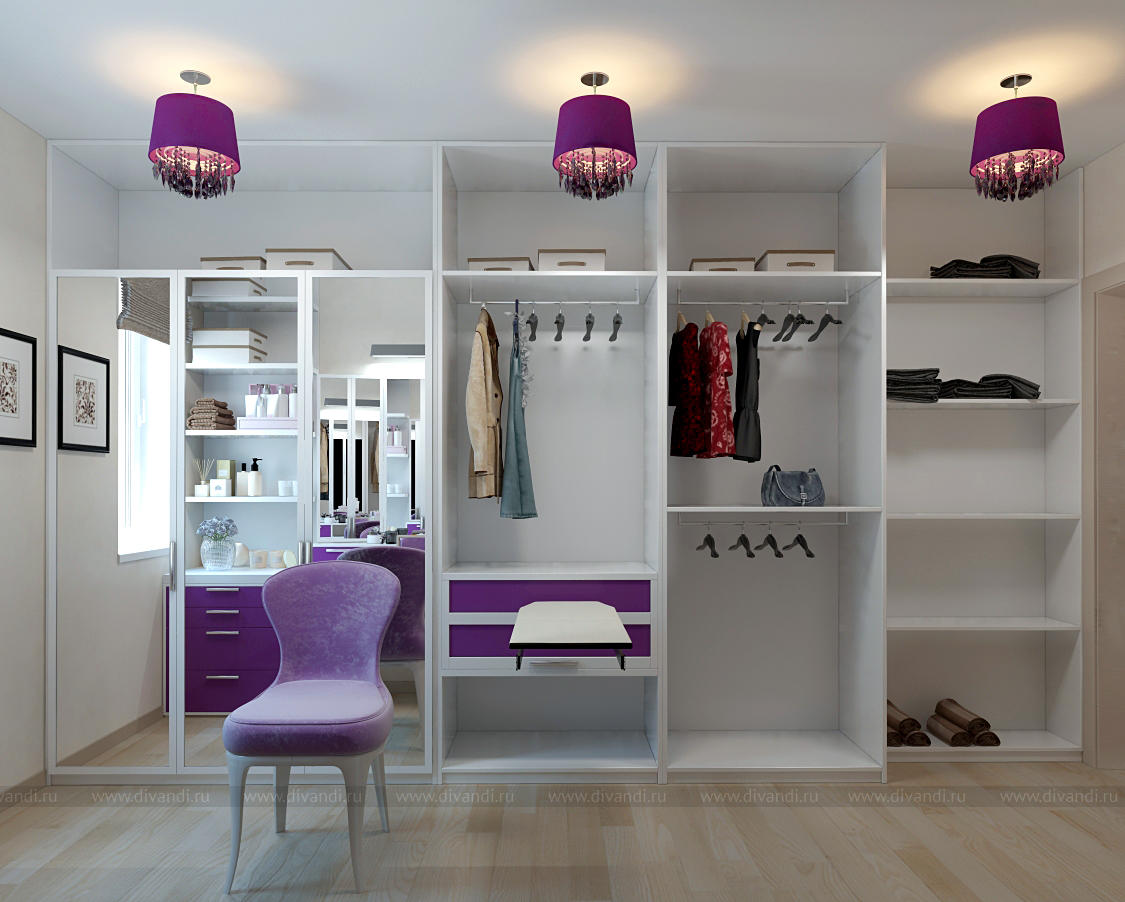 Дизайн гардеробной с будуаром в загородном коттедже, Московская область