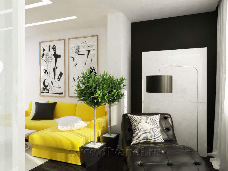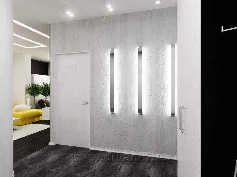 Основным пожеланием семейной пары к будущему интерьеру было не использовать дерево и пушистые ковры. Заказчики видели будущий интерьер просторным, современным, функциональным, светлым и с яркими акцентами.
