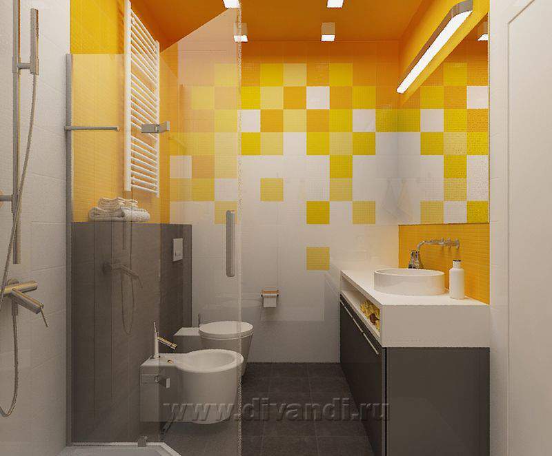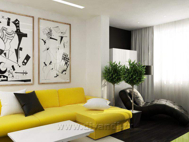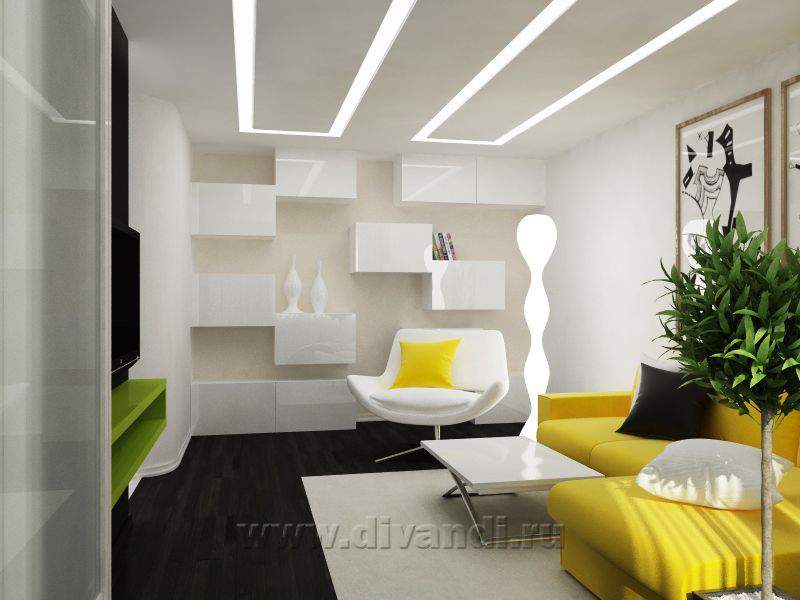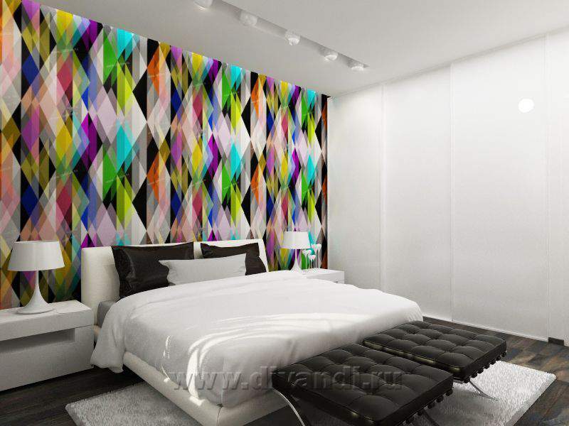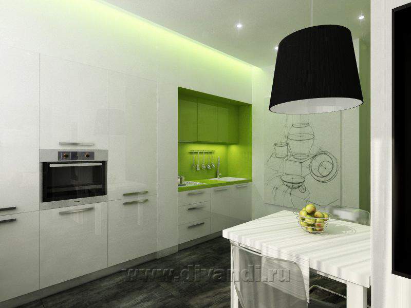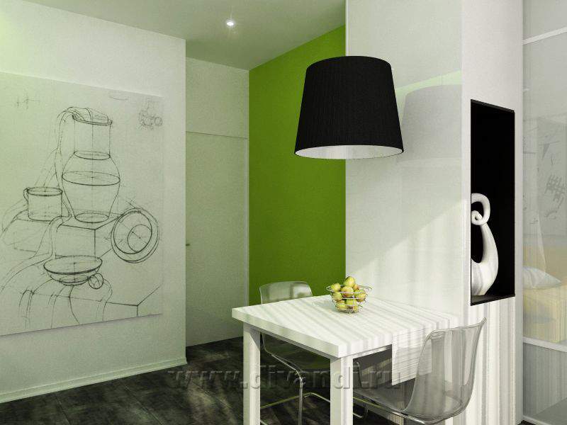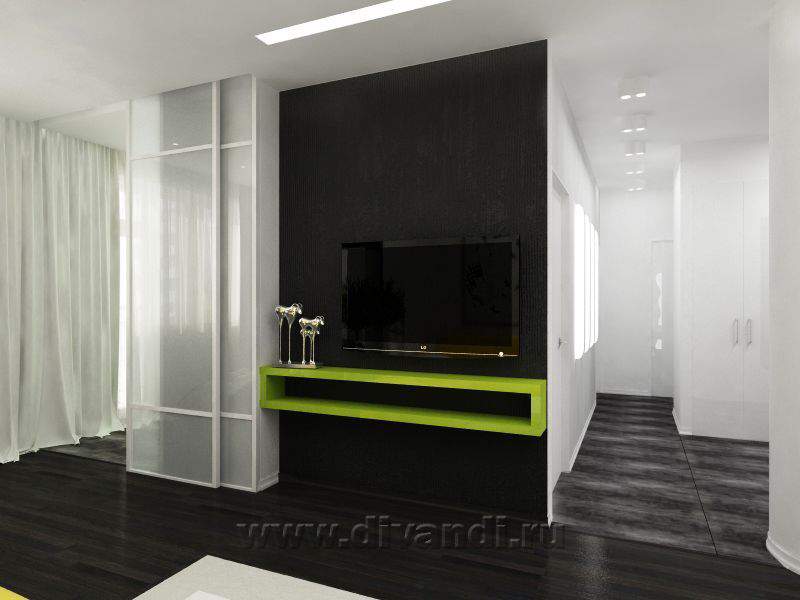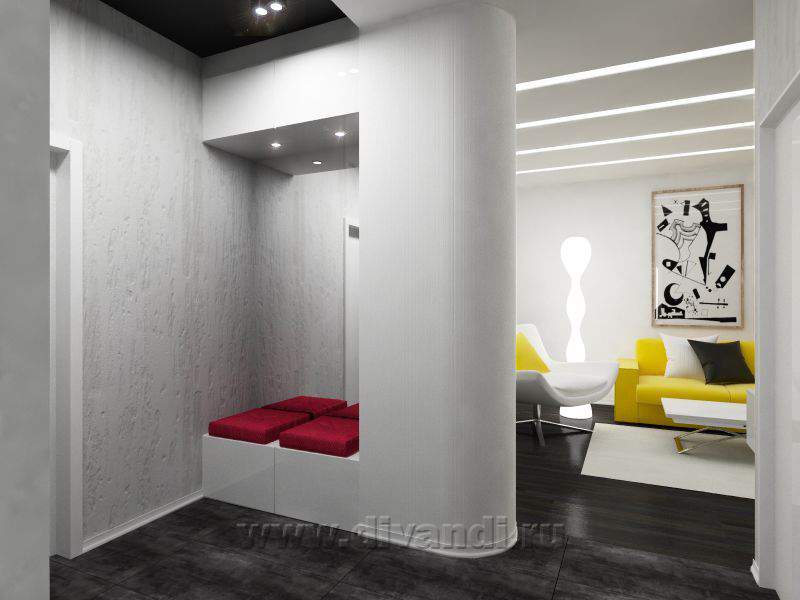 В дизайне квартиры были использованы такие современные материалы, как керамогранит, мозаика, паркетная доска. А главная идея интерьера заключается в распределении ярких акцентов на белом фоне.