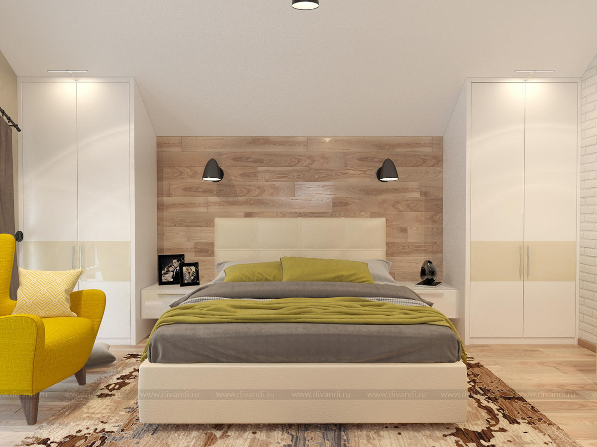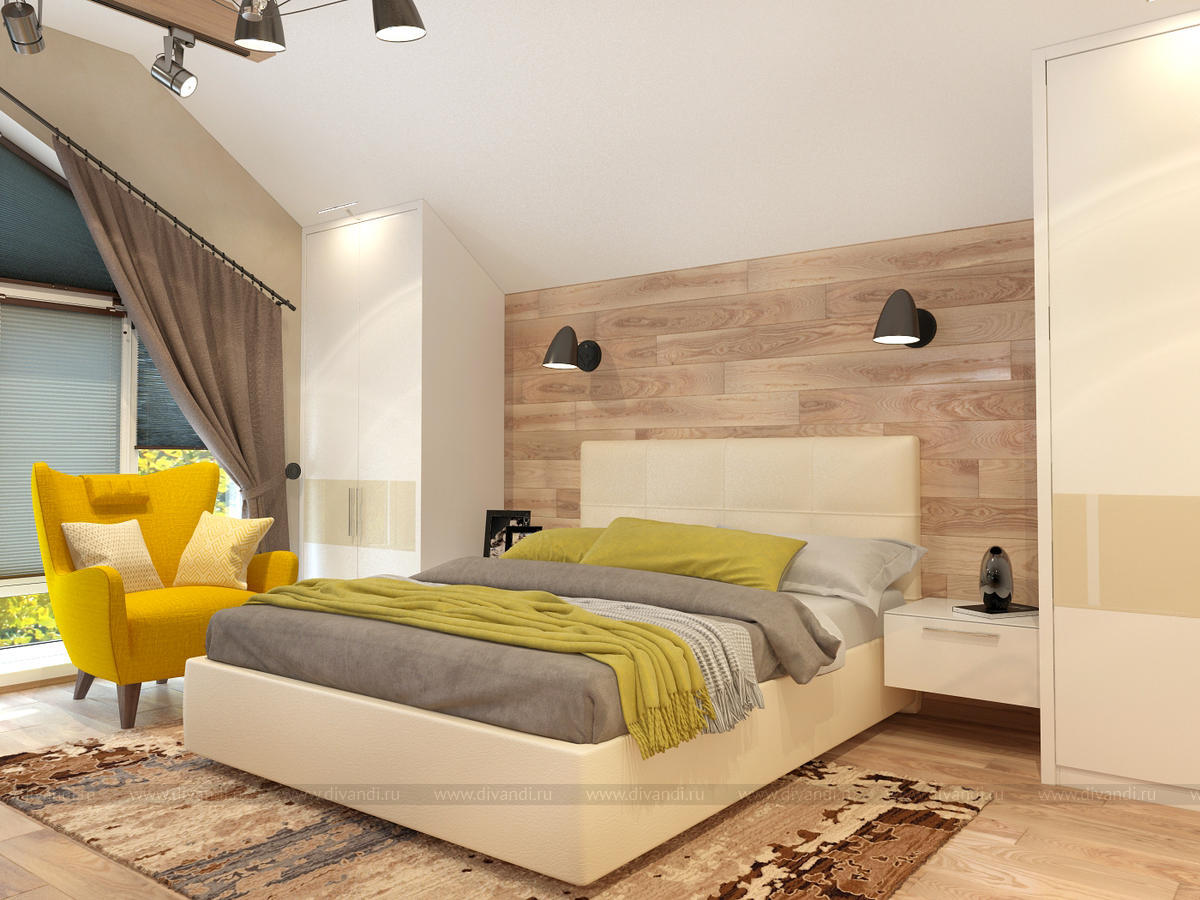 Гостевая спальня в эко стиле в коттедже под Екатеринбургом.