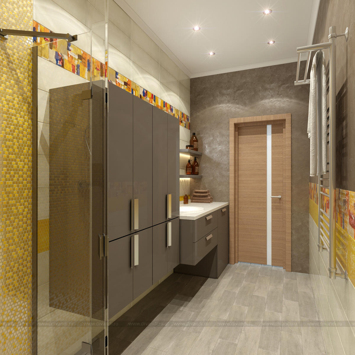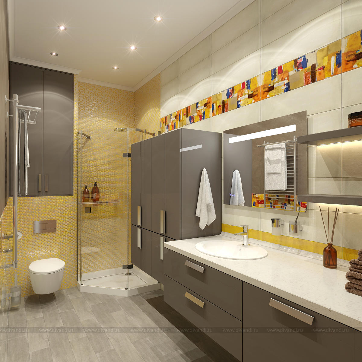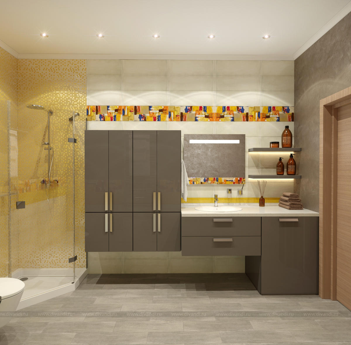 Гостевой санузел в коттедже под Екатеринбургом с яркими акцентами.