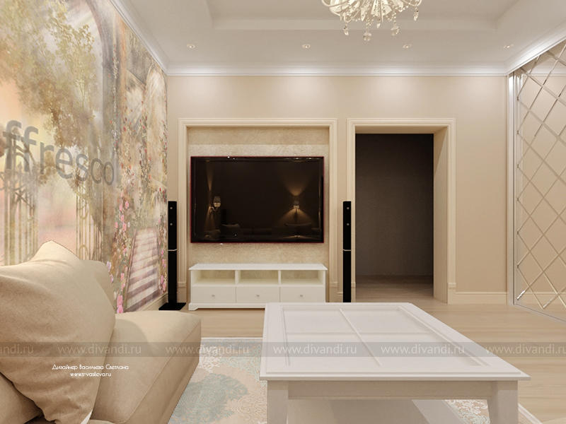 Дизайн-проект гостиной выполненной удаленно для замечательной молодой пары из г.Реутов, МО.