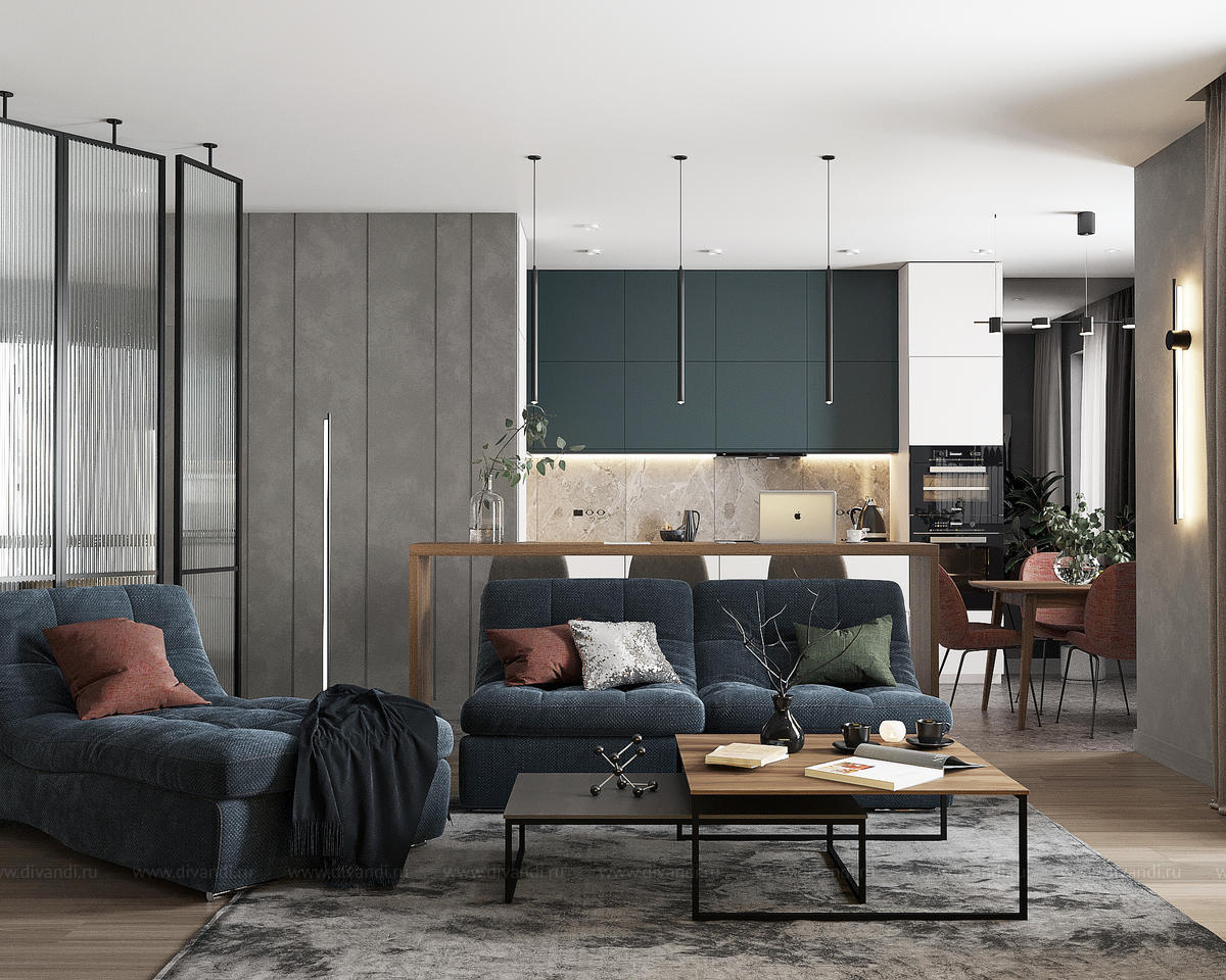Тип проекта: квартира, кухня, гостиная