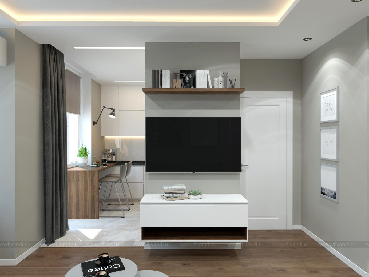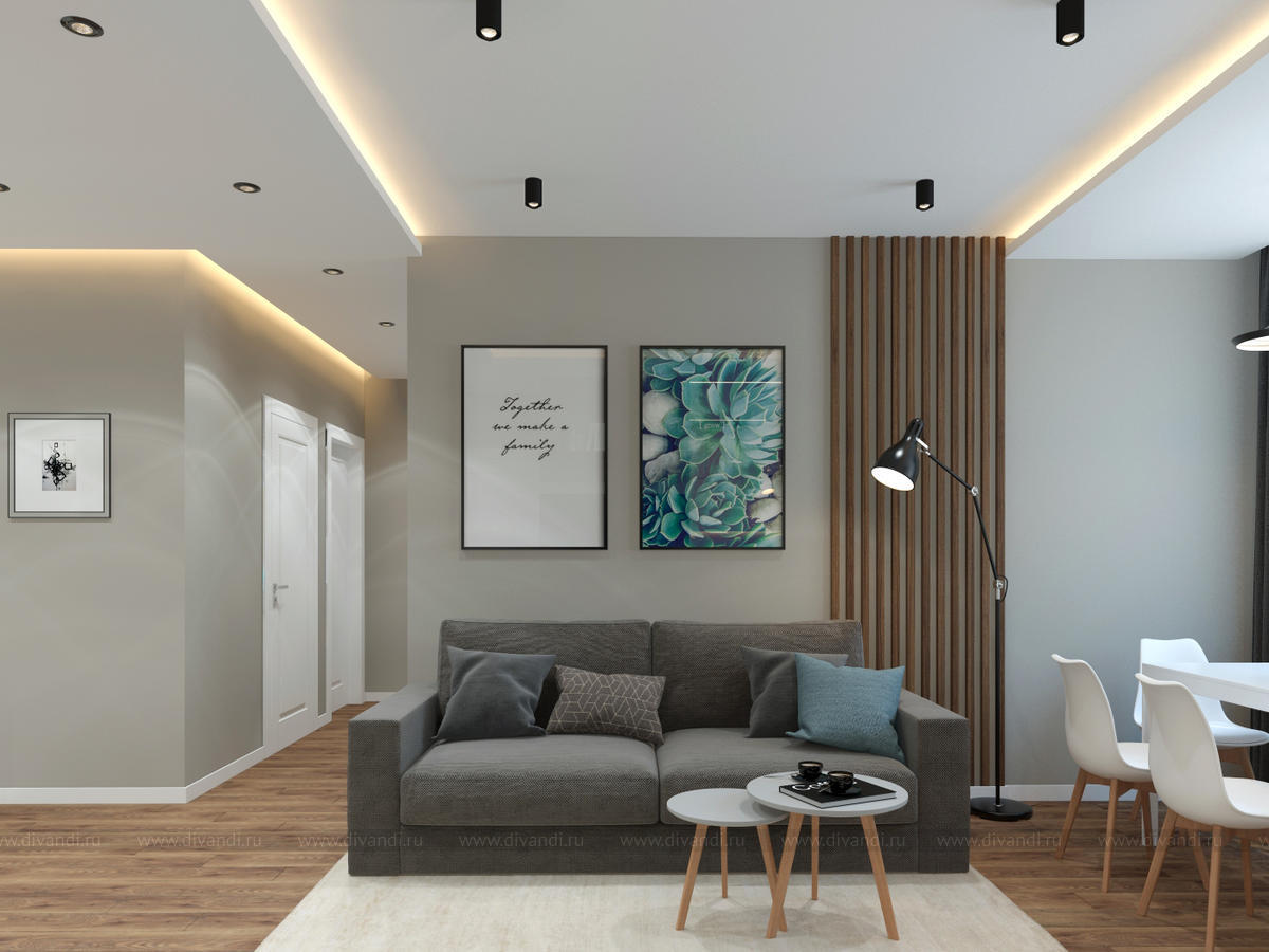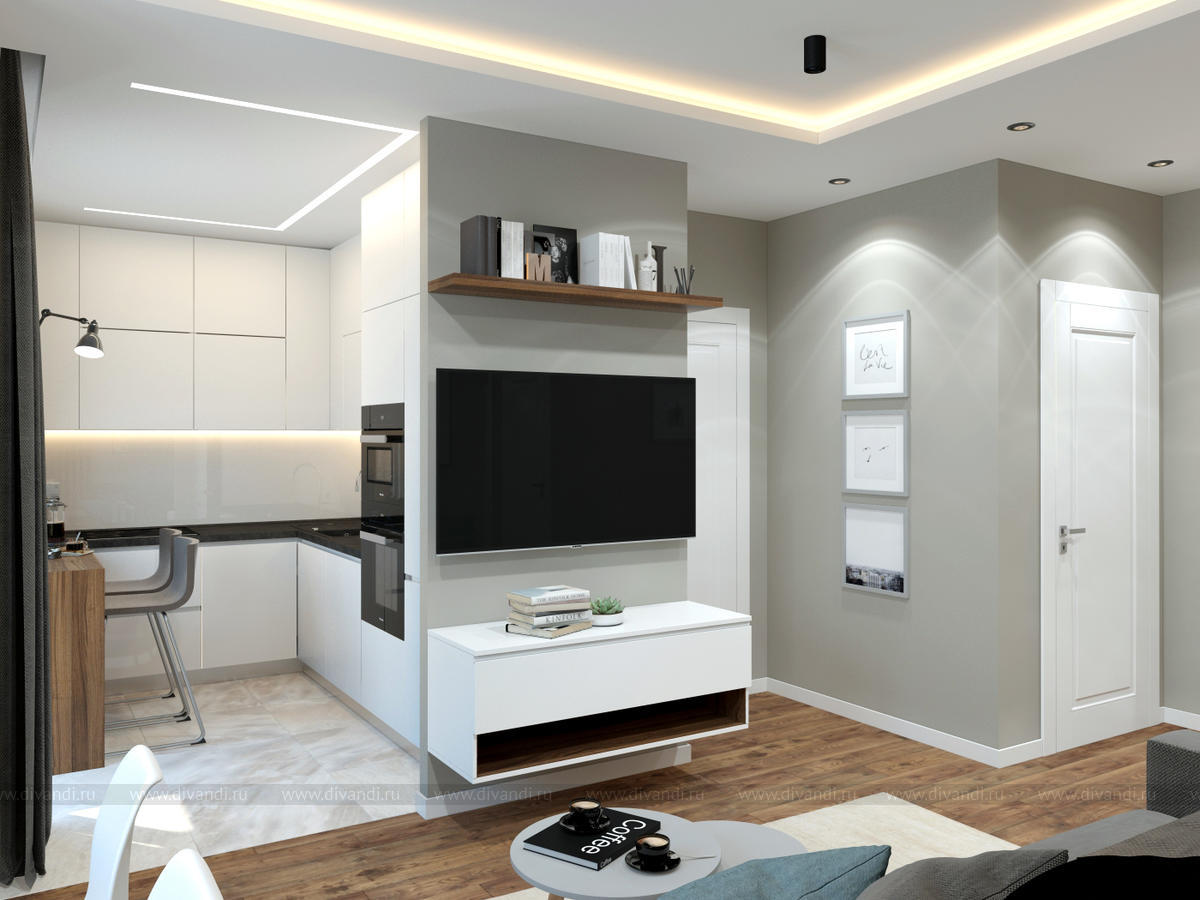 Гостиная кухня в квартире 80 м2 в ЖК " 7 ключей"