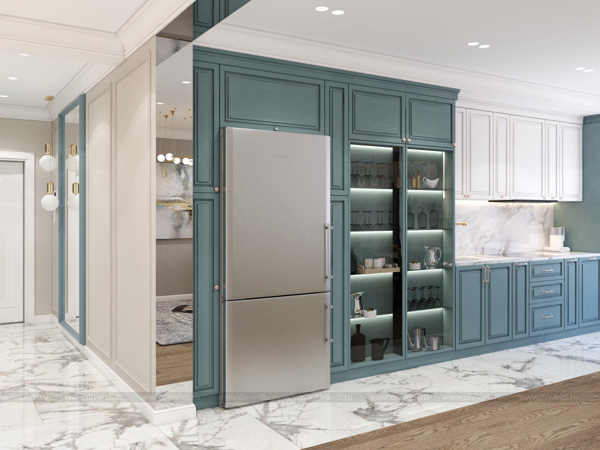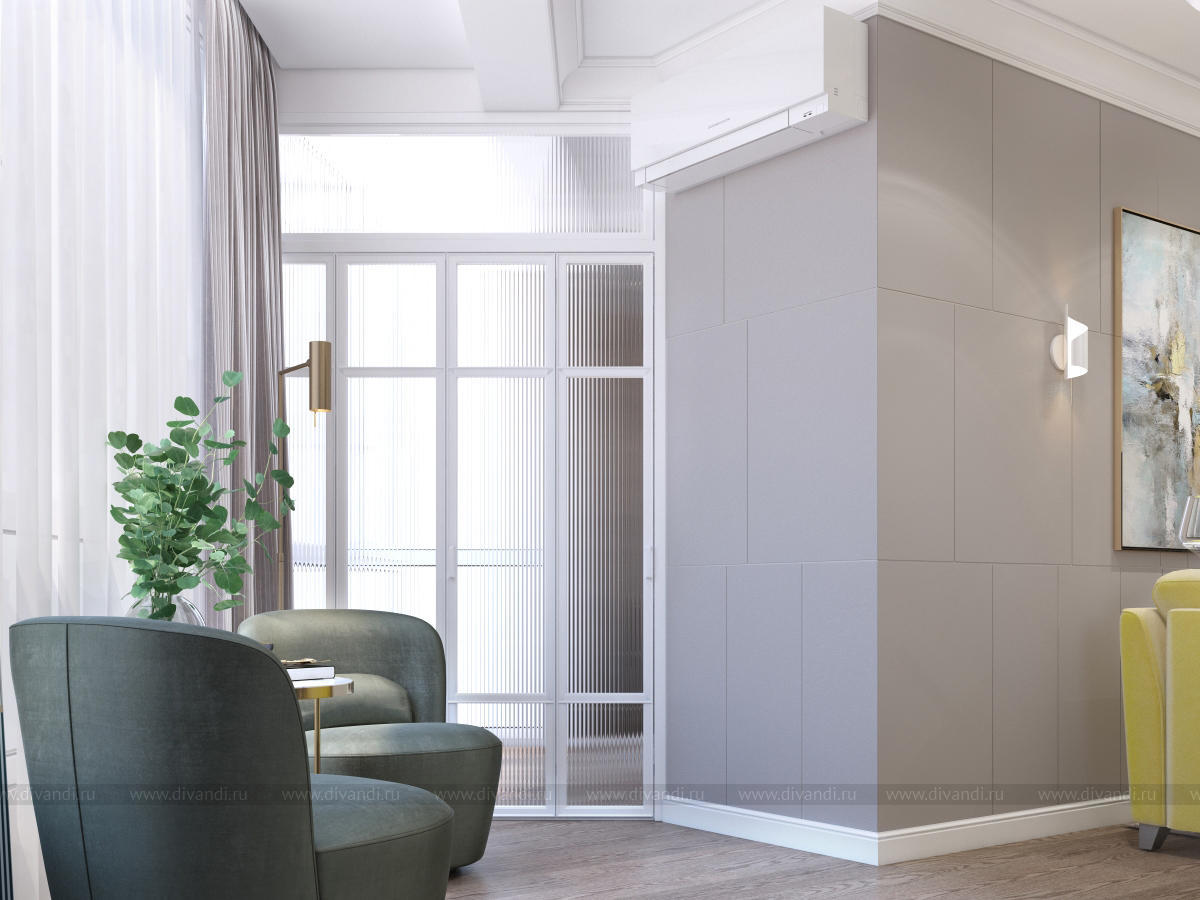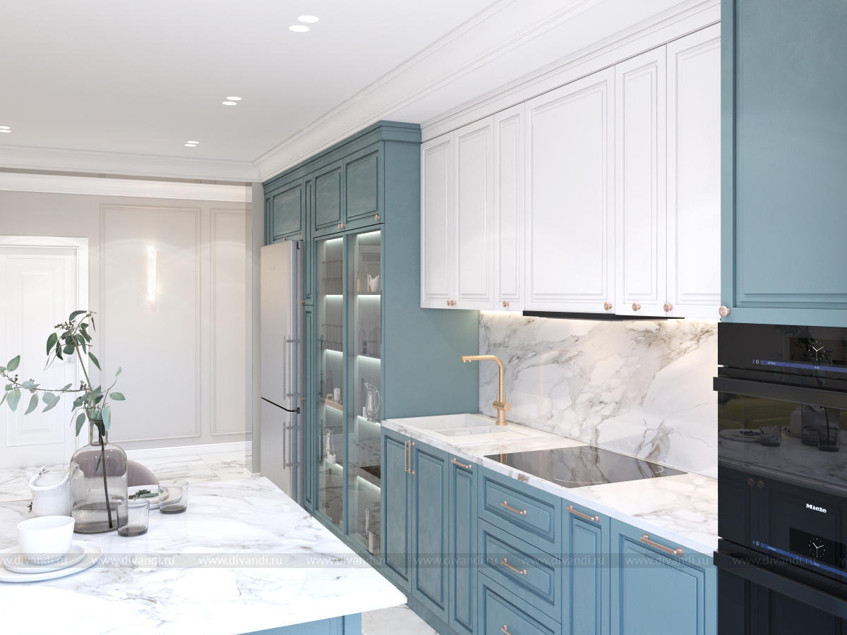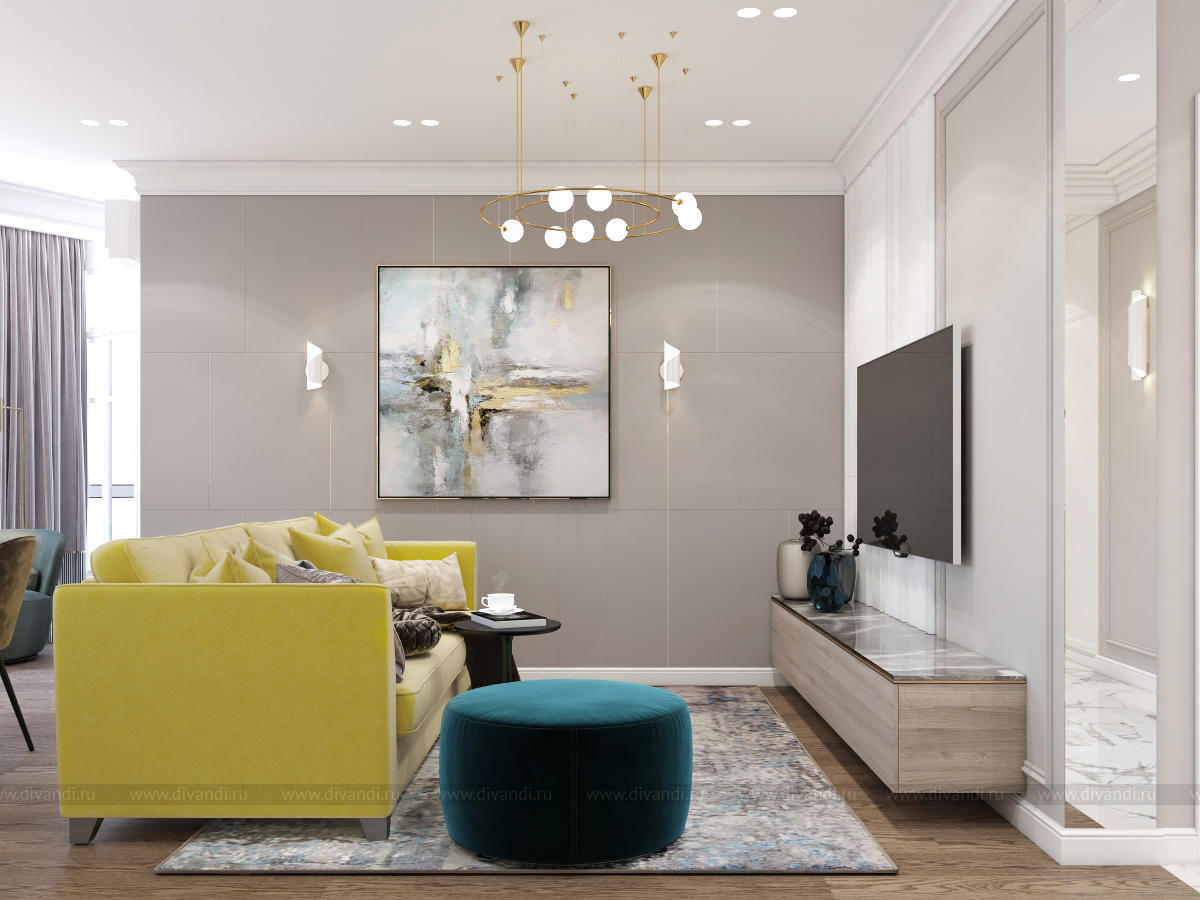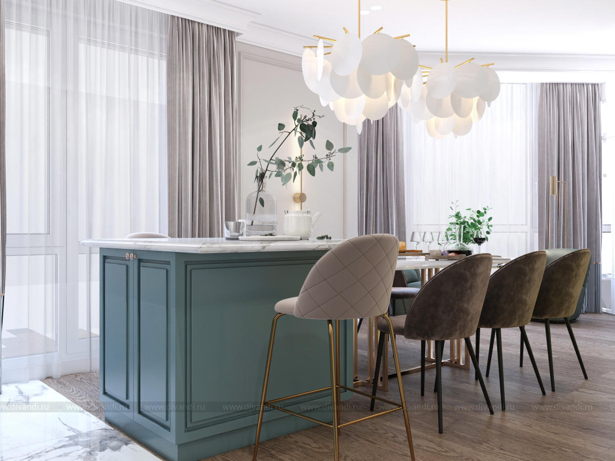 Гостиная-кухня в квартире г. Сочи в стиле неоклассика.