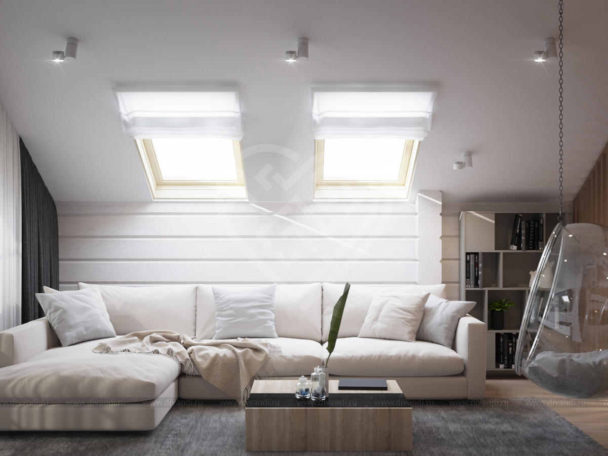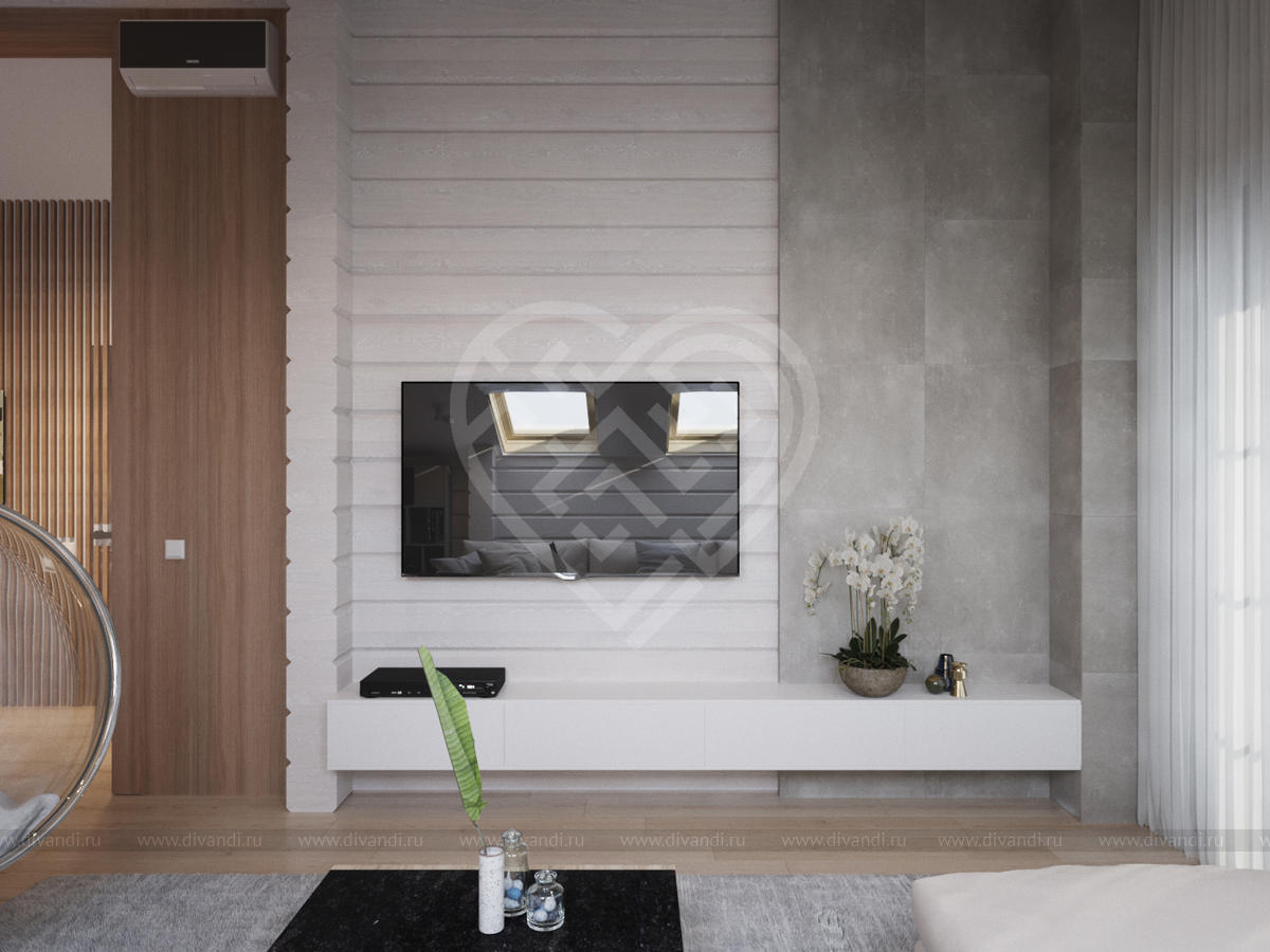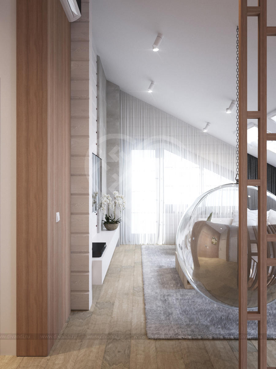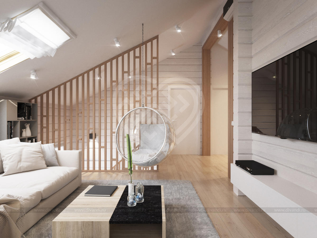 Гостиная на 2 этаже в загородном доме в современном стиле