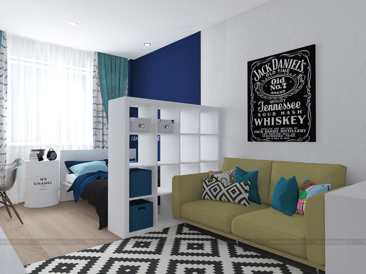 Гостиная-спальня в однокомнатной квартире с зонированием пространства