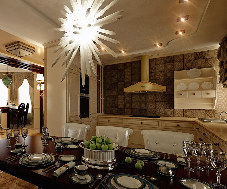 Уютная кухня-гостиная в любимом доме