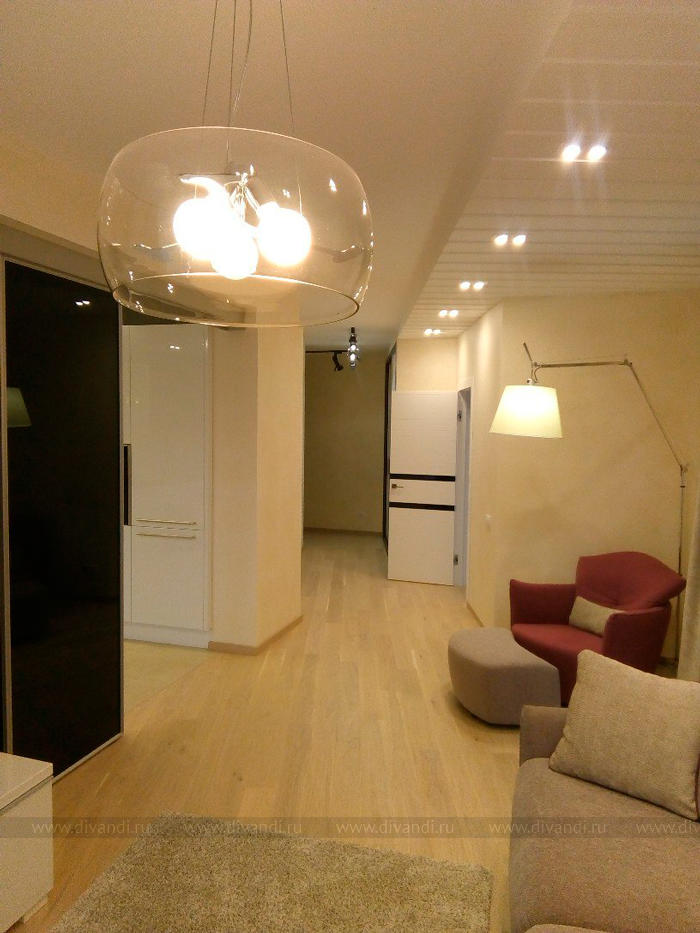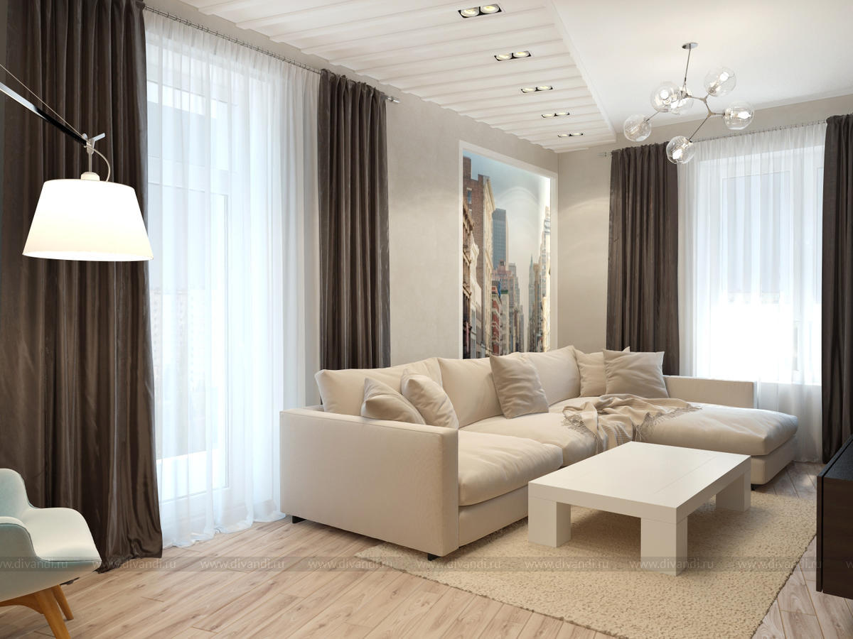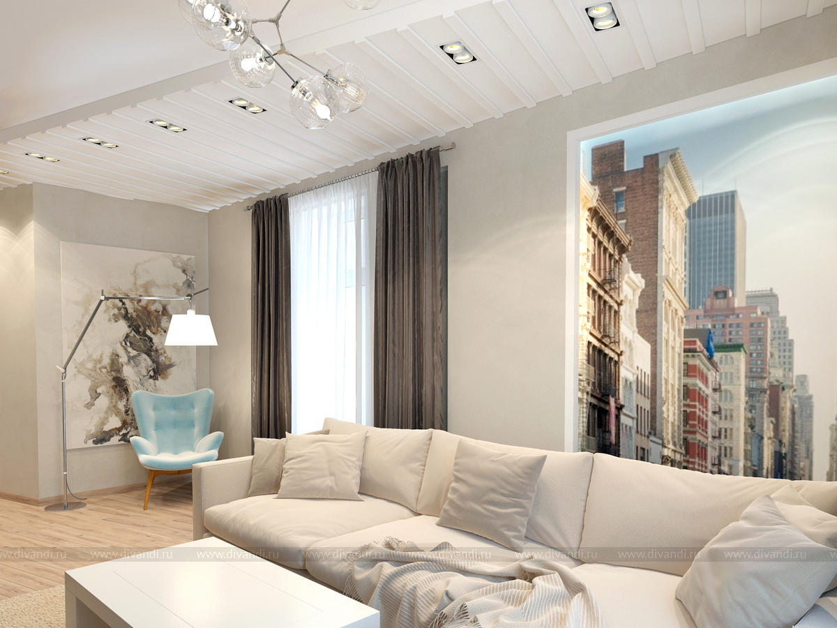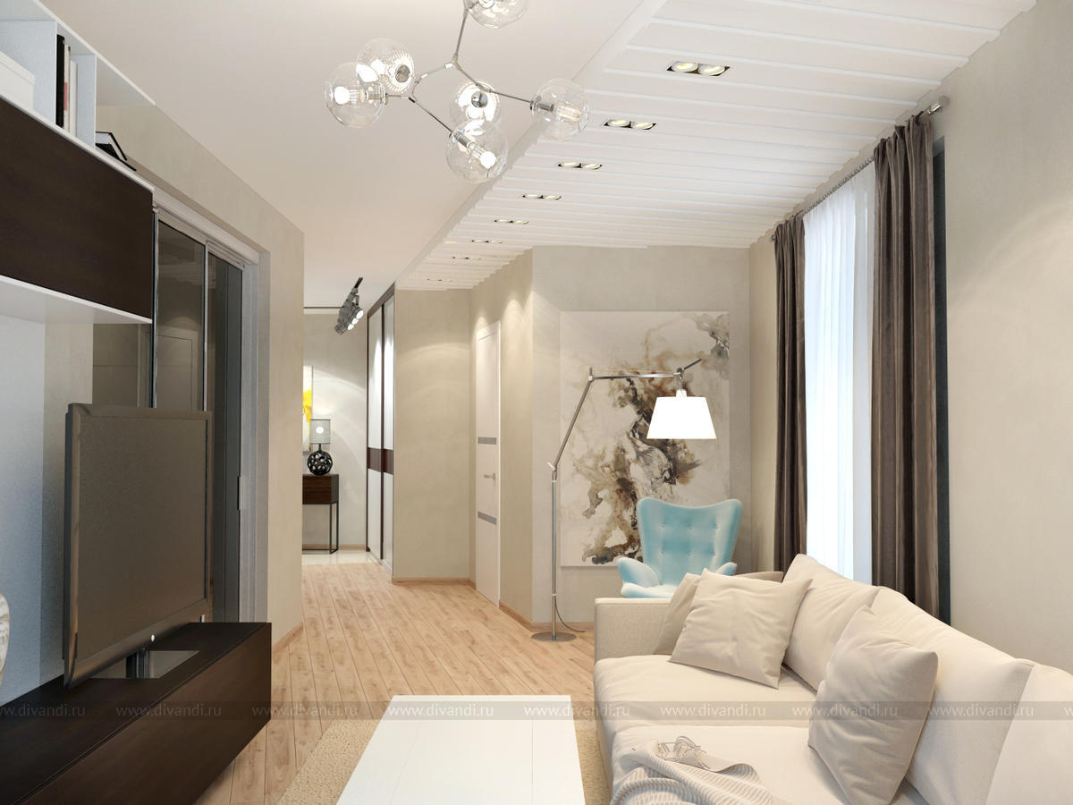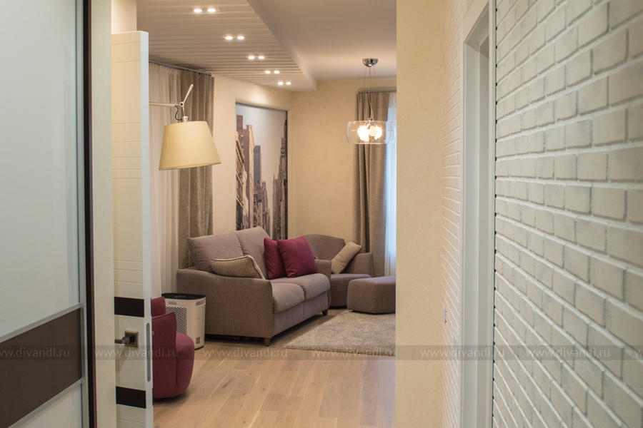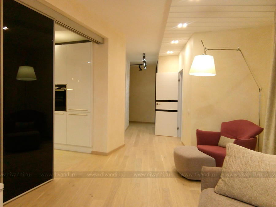 Гостиная, разделенная с кухней раздвижной перегородкой. 2-х комнатная квартира в ЖК "Монте Кристо" Екатеринбург. Проект и фото-реализация!!!