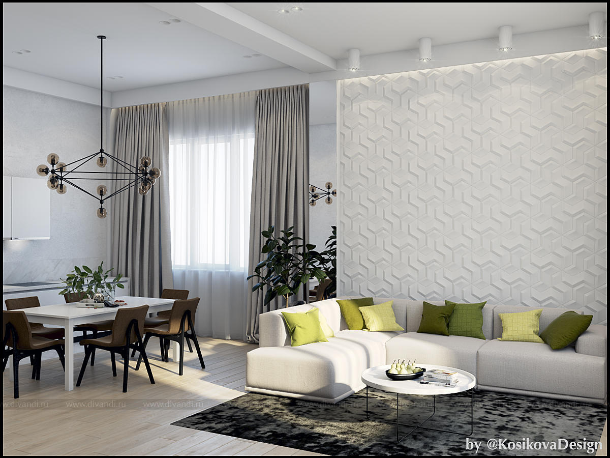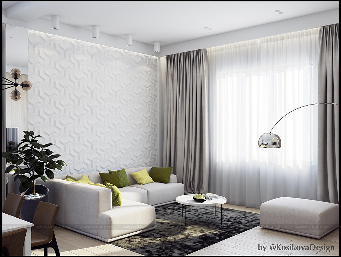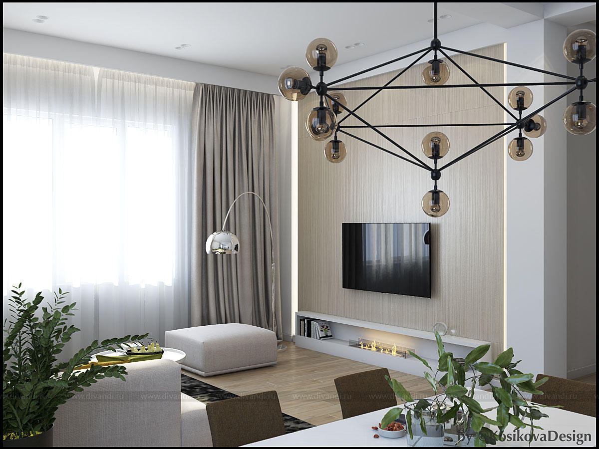 Просторная гостиная в современном стиле. Здесь с удобством может разместиться дружная компания или большая семья.