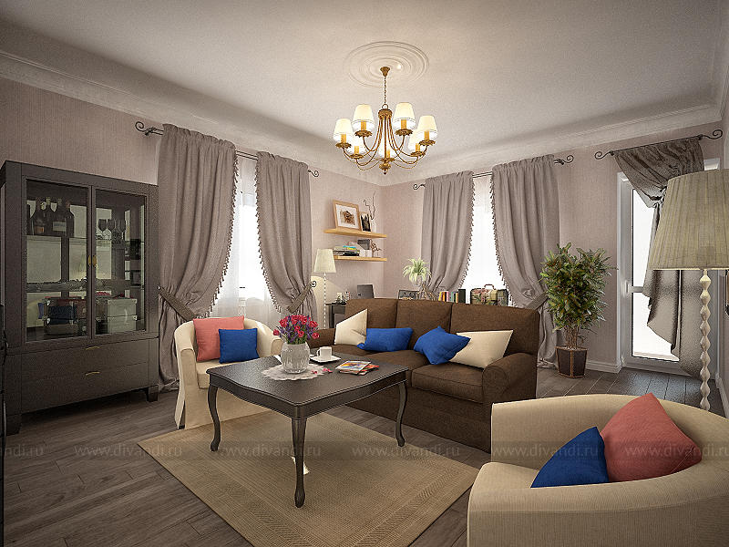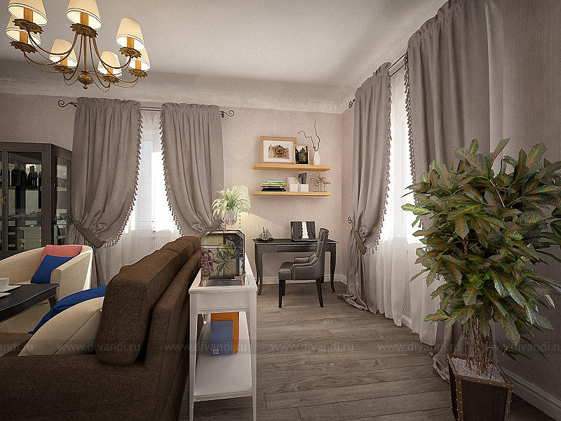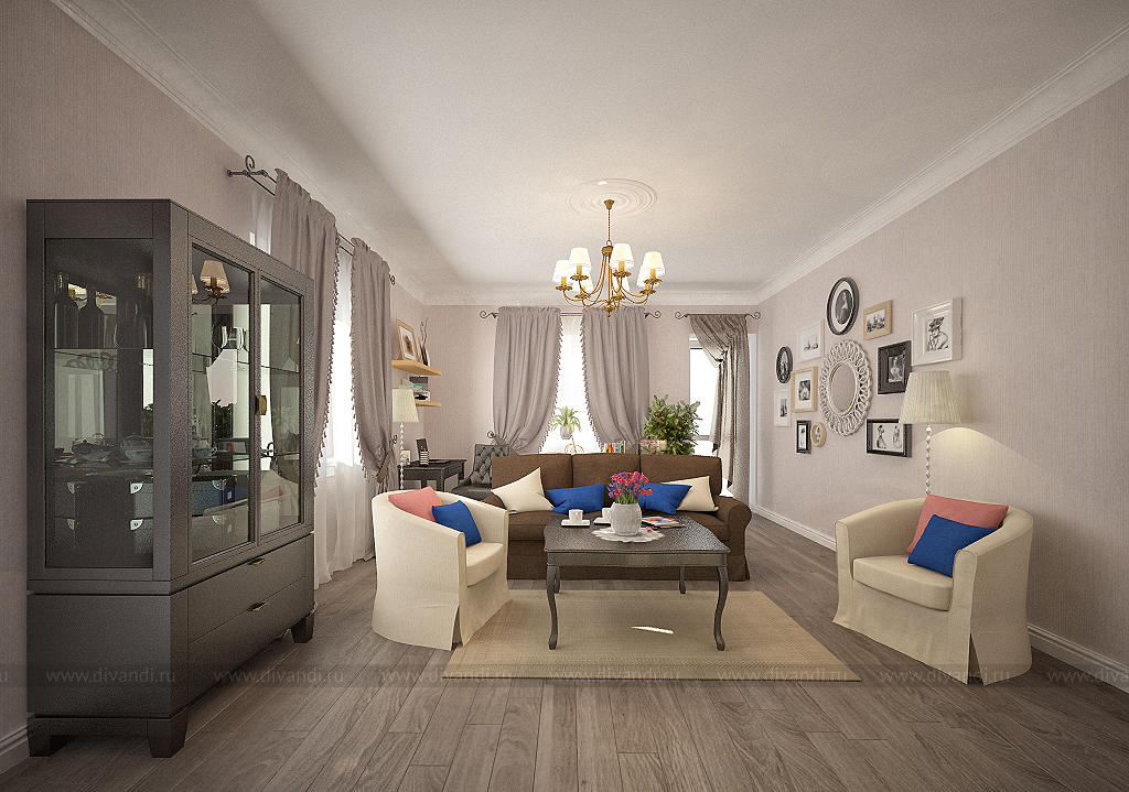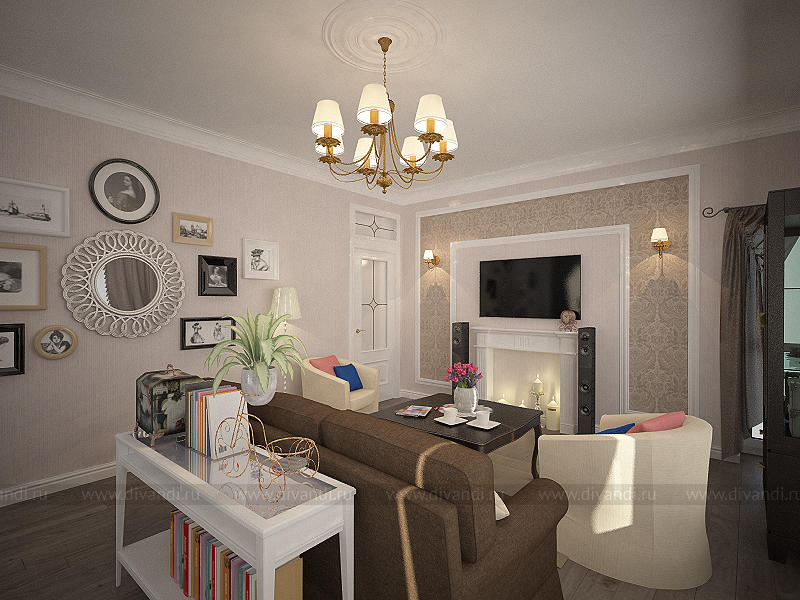Дизайн интерьера гостиной из проекта двухкомнатной квартиры на ул. Краснофлотцев в Екатеринбурге.