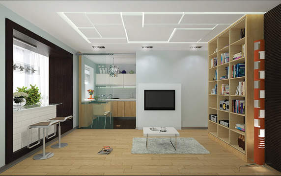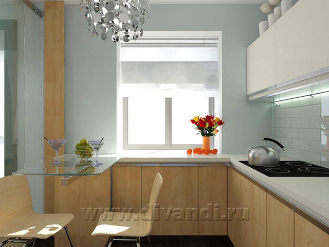 В этой квартире (типовая квартира в хрущевке) перед нами стояла задача максимально увеличить пространство зрительно. Для этого гостиная была совмещена с кухней, а за счет коридора на кухню была увеличена ванная