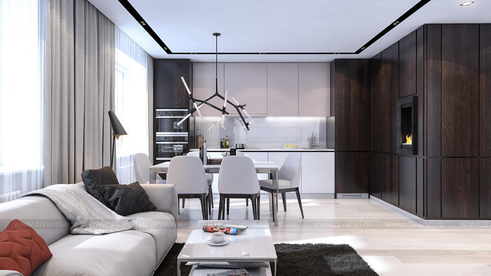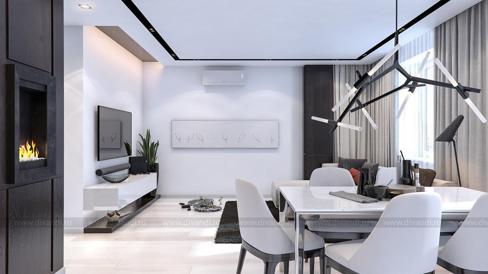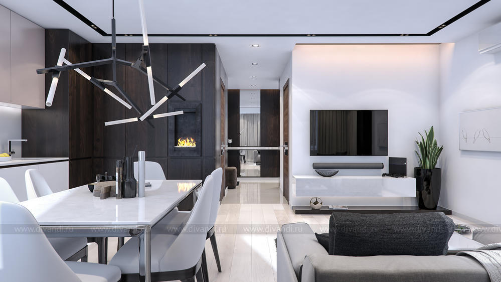 Разработали проект гостиной в ЖК "Квартал художников". Современный лаконичный контрастный интерьер. Как вам?