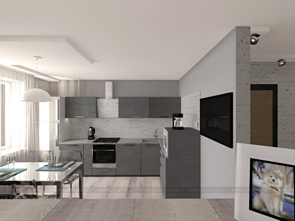 Тип проекта: кухня, гостиная