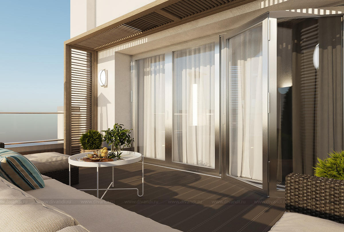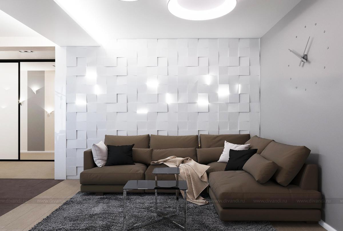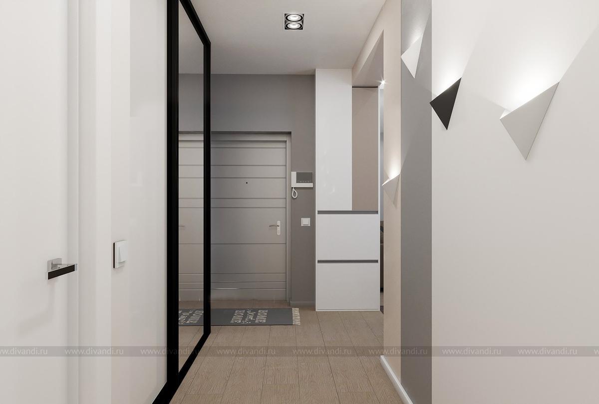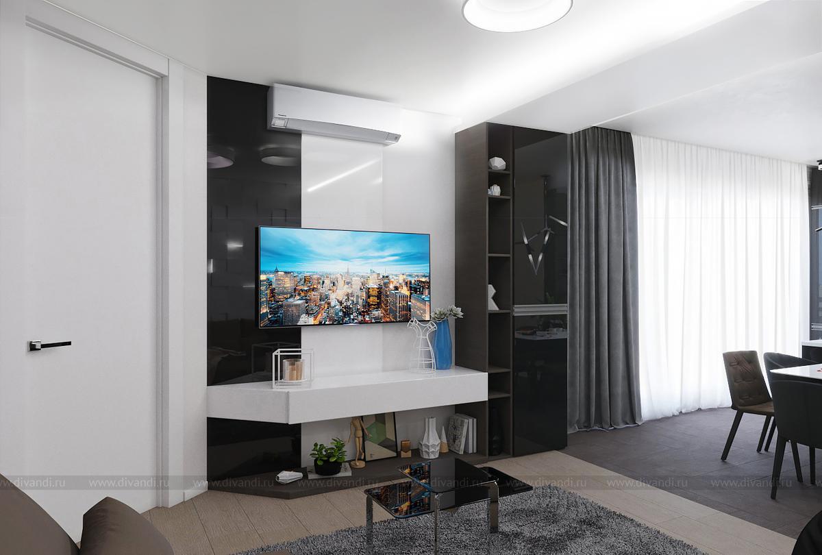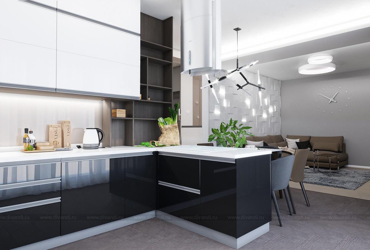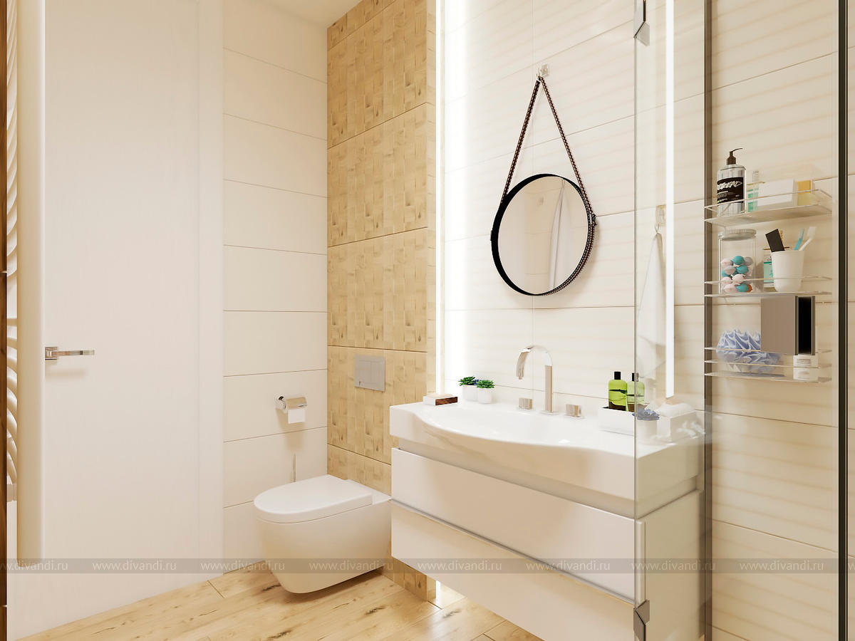 Проект выполнен в современном стиле, в спальне была выбрана планировка "гостиничного номера" со стеклянными стенами ванной комнаты. Проходной коридор объединили с кухней, получив общее пространство кухни-столовой с гостиной зоной, а небольшой балкончик заменила складная теплая дверь-перегородка, позволяя летом наслаждаться широким проходом на террасу. Интересен проект получился и в плане оформления - это и 3Д панели со встроенными светильниками, деревянные рейки и мягкие панели, и керамогранит в санузлах Итальянских и Испанских производителей.