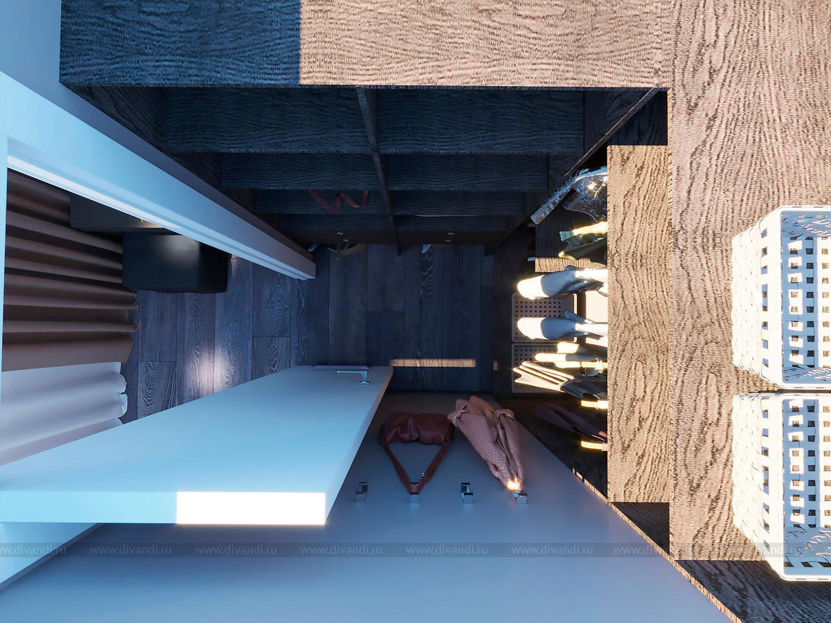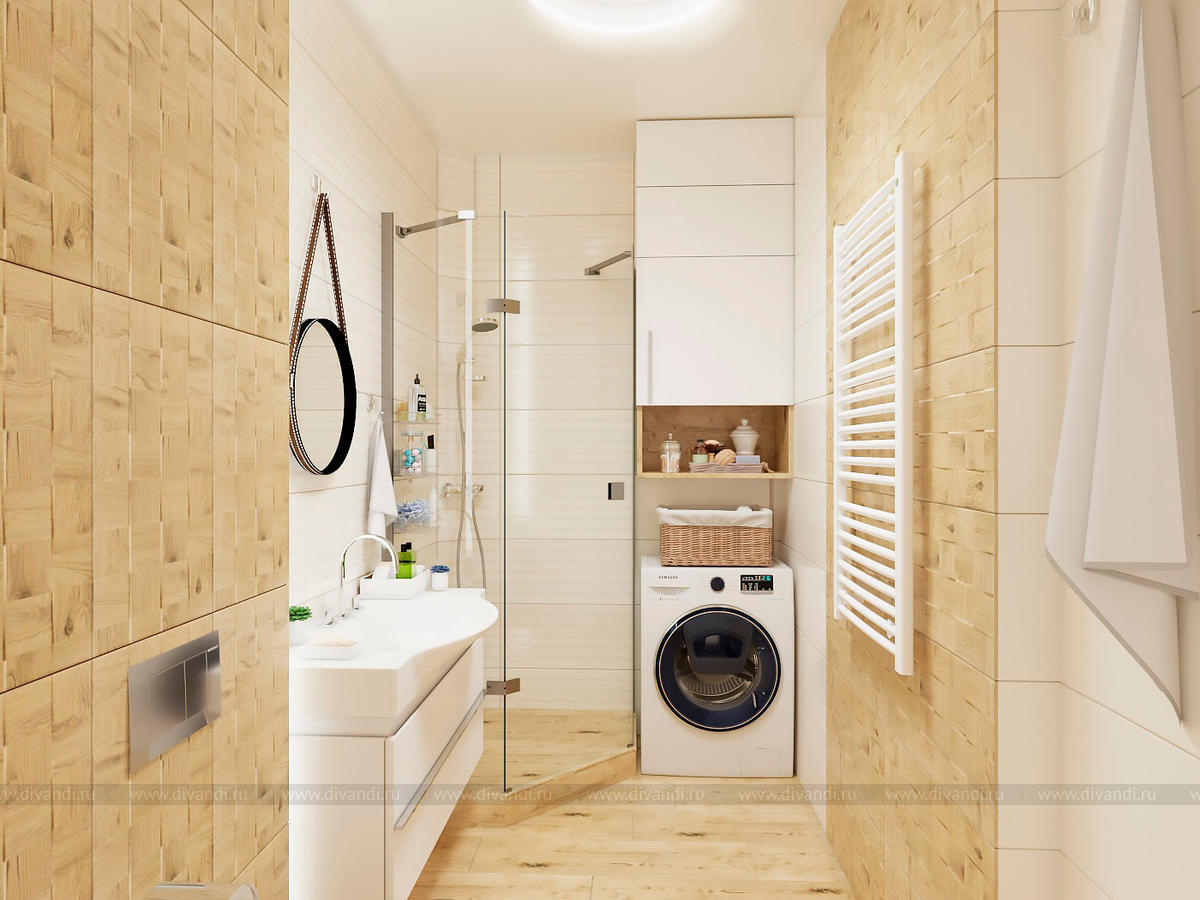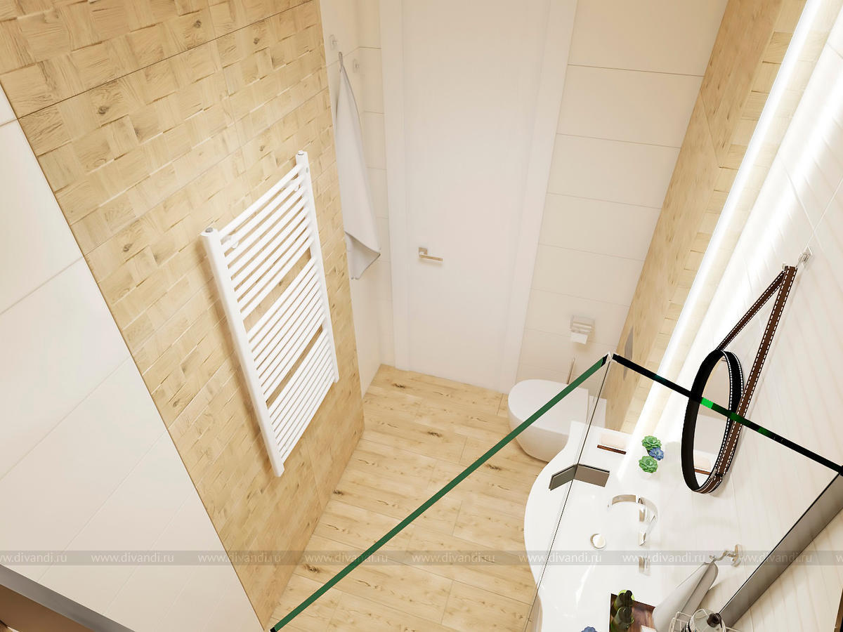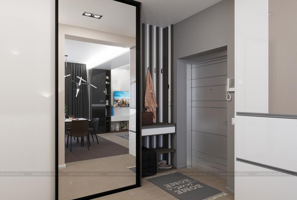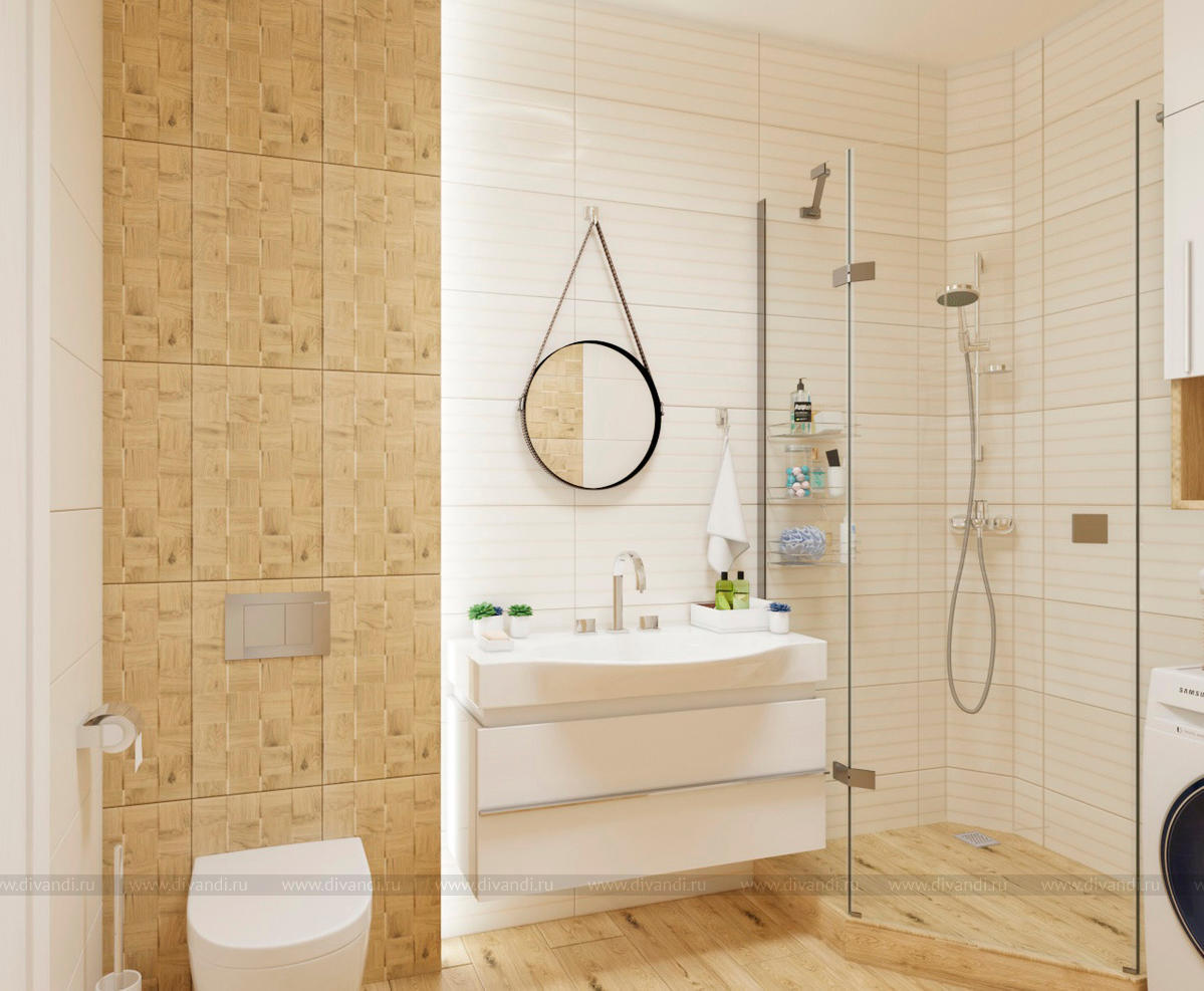 Проект выполнен в современном стиле, в спальне была выбрана планировка "гостиничного номера" со стеклянными стенами ванной комнаты. Проходной коридор объединили с кухней, получив общее пространство кухни-столовой с гостиной зоной, а небольшой балкончик заменила складная теплая дверь-перегородка, позволяя летом наслаждаться широким проходом на террасу. Интересен проект получился и в плане оформления - это и 3Д панели со встроенными светильниками, деревянные рейки и мягкие панели, и керамогранит в санузлах Итальянских и Испанских производителей.