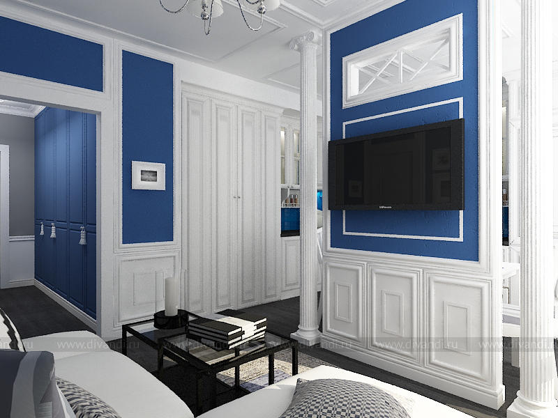 В небольшой квартире в Екатеринбурге (48 кв.м.) дизайнеры разместили все необходимое для жизни молодой пары. После грамотной перепланировки удалось выделить гостиную, кухню, рабочую зону, столовую, спальню, санузел, прихожую с вместительным шкафом и гардероб. Интерьер получился очень уютным и смелым. Яркие цвета здесь сочетаются с классическими элементами, что делает особенным. Стиль можно обозначить как классика в современной интерпретации.