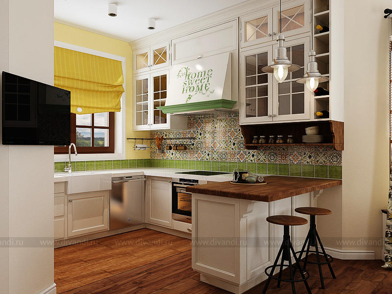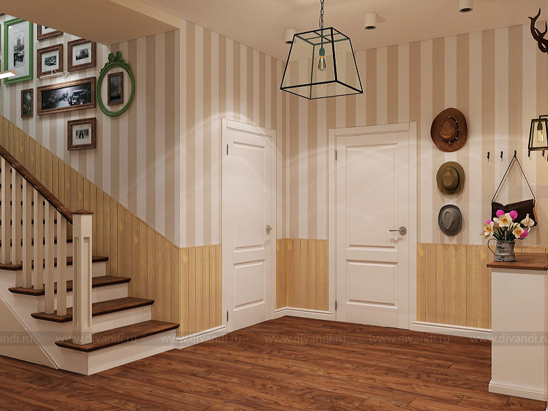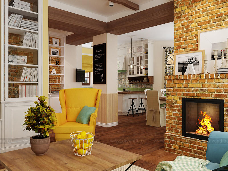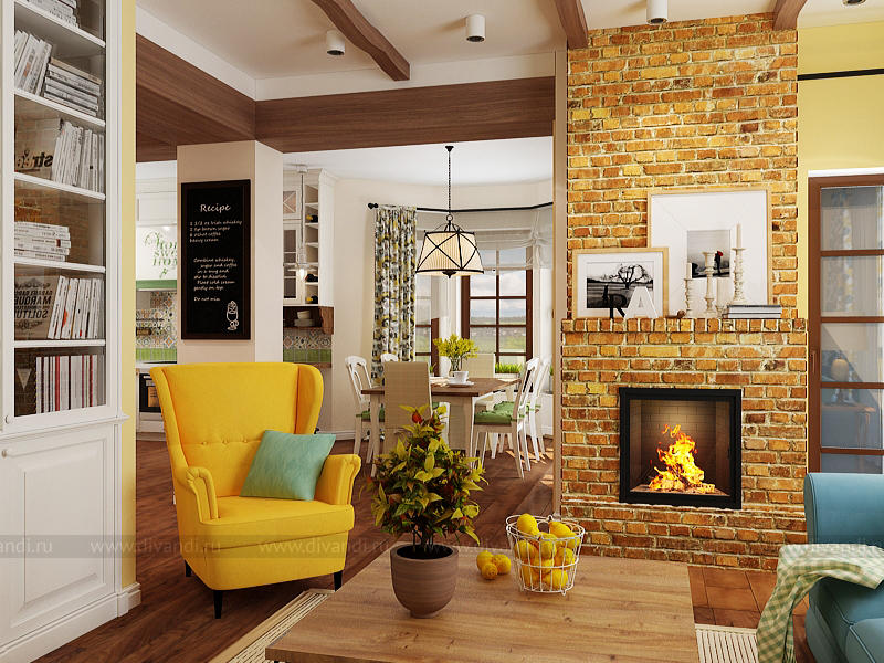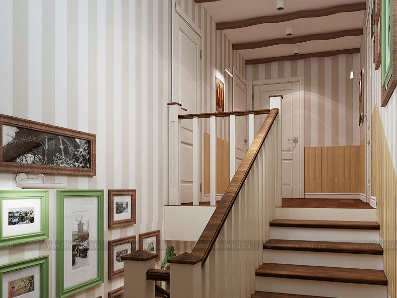 Заказчики хотели, чтобы интерьер дома (217 кв.м.) не относился ни к одному из стилей, а был индивидуальным. Так получился оригинальный интерьер, в котором элементы кантри соседствуют с элементами прованса, лофт с классикой, а современный стиль с шале. Заказчики не боялись экспериментировать, поэтому дом получился ярким и красочным.