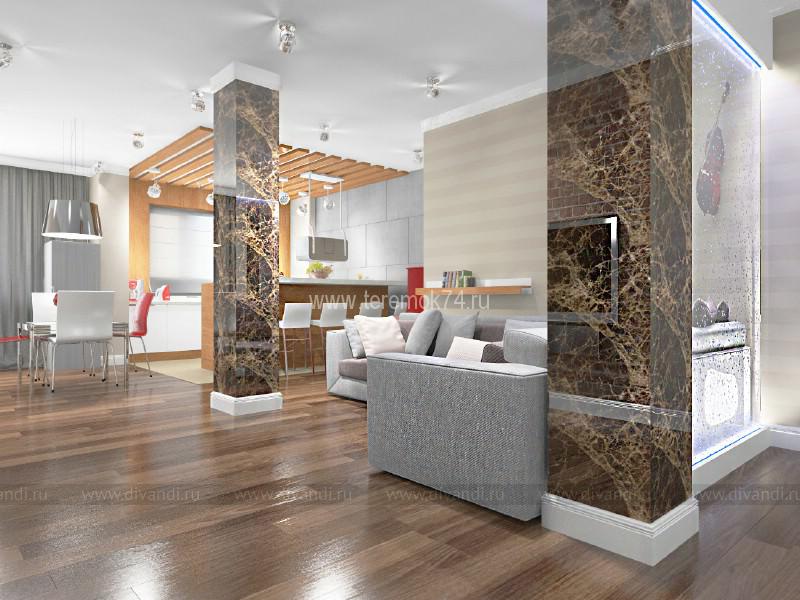 Тип проекта: кухня, гостиная