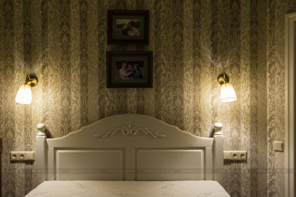 Реализованная спальня в квартире для молодой семейной пары. Легкая современная классика с элементами прованса делает спальню нежной и умиротворяющей.