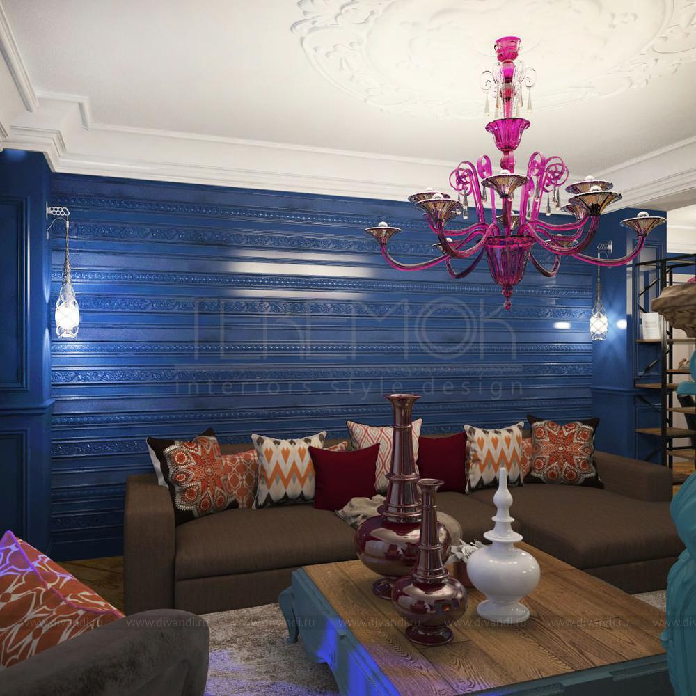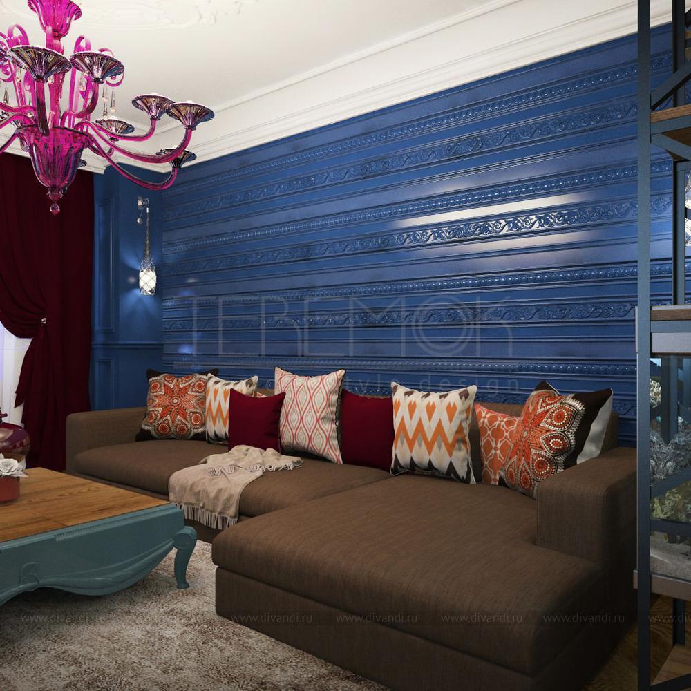 Особенное влияние на людей оказывает цвет индиго или глубокий тёмный синий цвет, пользующийся особой популярностью в восточных странах. В этом свойства индиго схожи с голубыми оттенками.Именно оттенки синего, символизирующие цвет неба и водной стихии, способны придать гостиным комнатам черты спокойствия и умиротворённости. Синий цвет может присутствовать в гостиных, выполненных в различных стилях. Этот чарующий цвет на долгое время поселится в главной комнате дома!