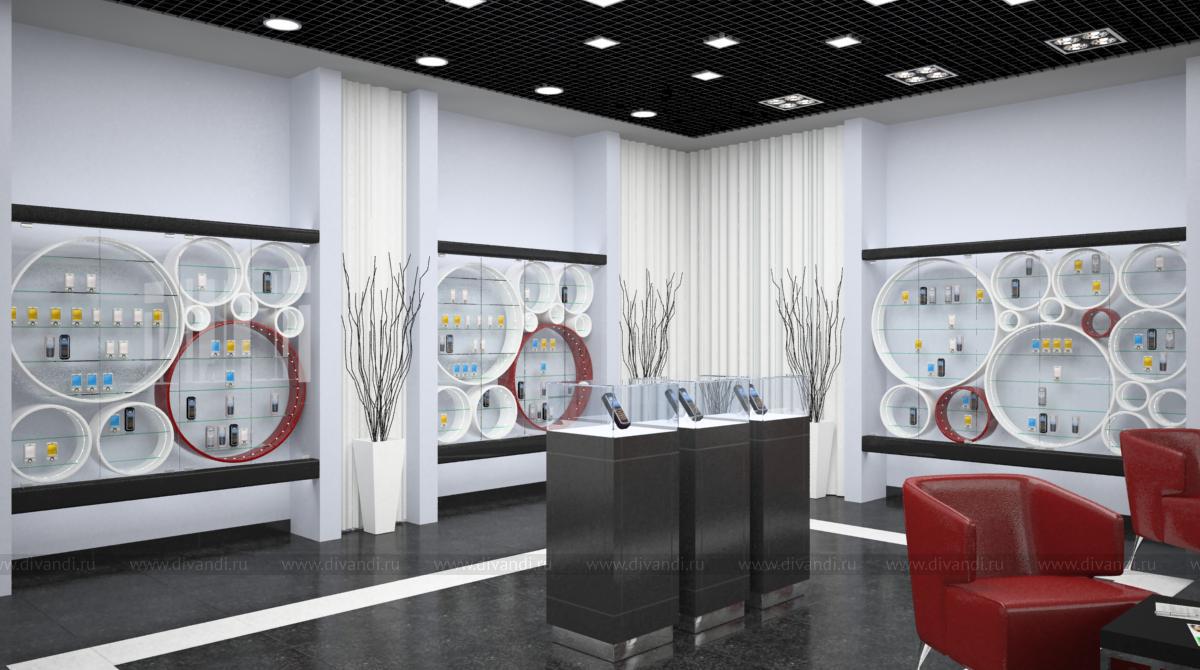 Дизайн интерьера магазина продажи премиальных телефонов в ТЦ Европа.