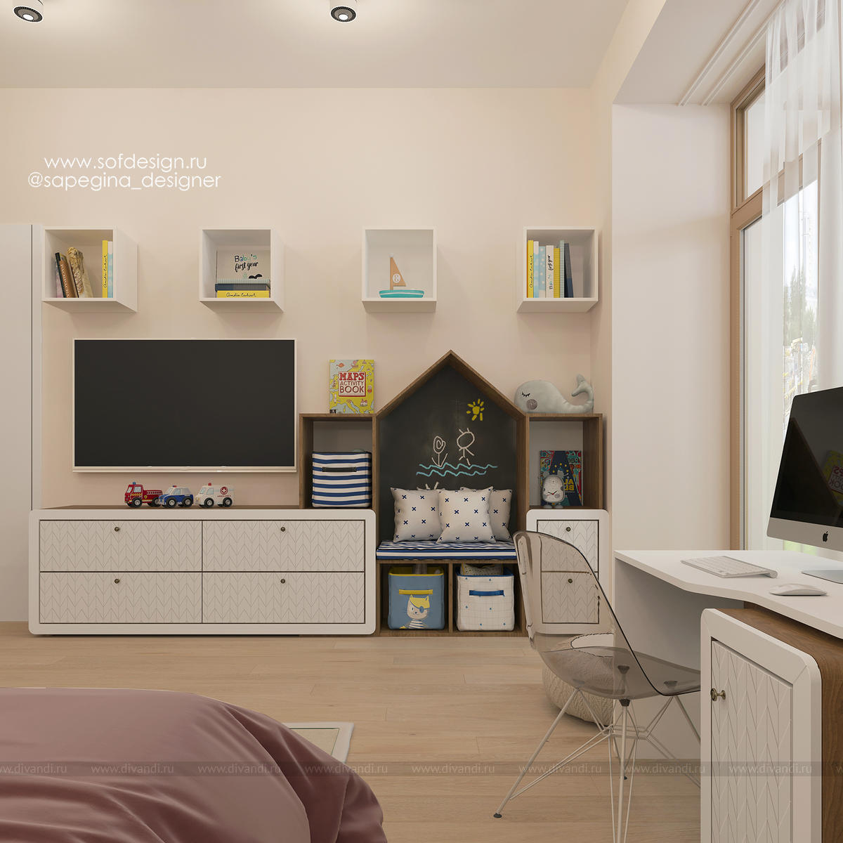 ⭐Грамотно продуманное расположение мебели позволяет пользоваться детской, как конструктором, по мере взросления ребёнка! Причём без лишних затрат и телодвижений! Детскую колыбельку меняем на комод, а игровую зону на тумбу под ТВ! Трансформация детской комнаты в подростковую - done✅