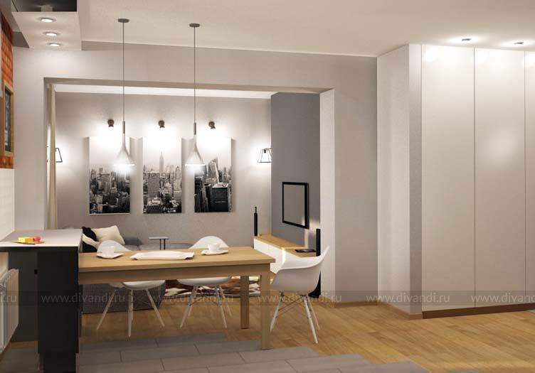 Молодая семья. Небольшая квартира с хорошей изначальной планировкой (конечно, кое-что переделали). Из пожеланий – скандинавский стиль с элементами лофта. Так как скандинавский стиль достаточно скучен в чистом виде для нас, избалованных модными кафе и дорогими спортзалами, более активно добавили стилистику лофта и очень ярко выделившегося из него в последнее время индустриального стиля. Все лаконично, логично, функционально, но не без «изюма».