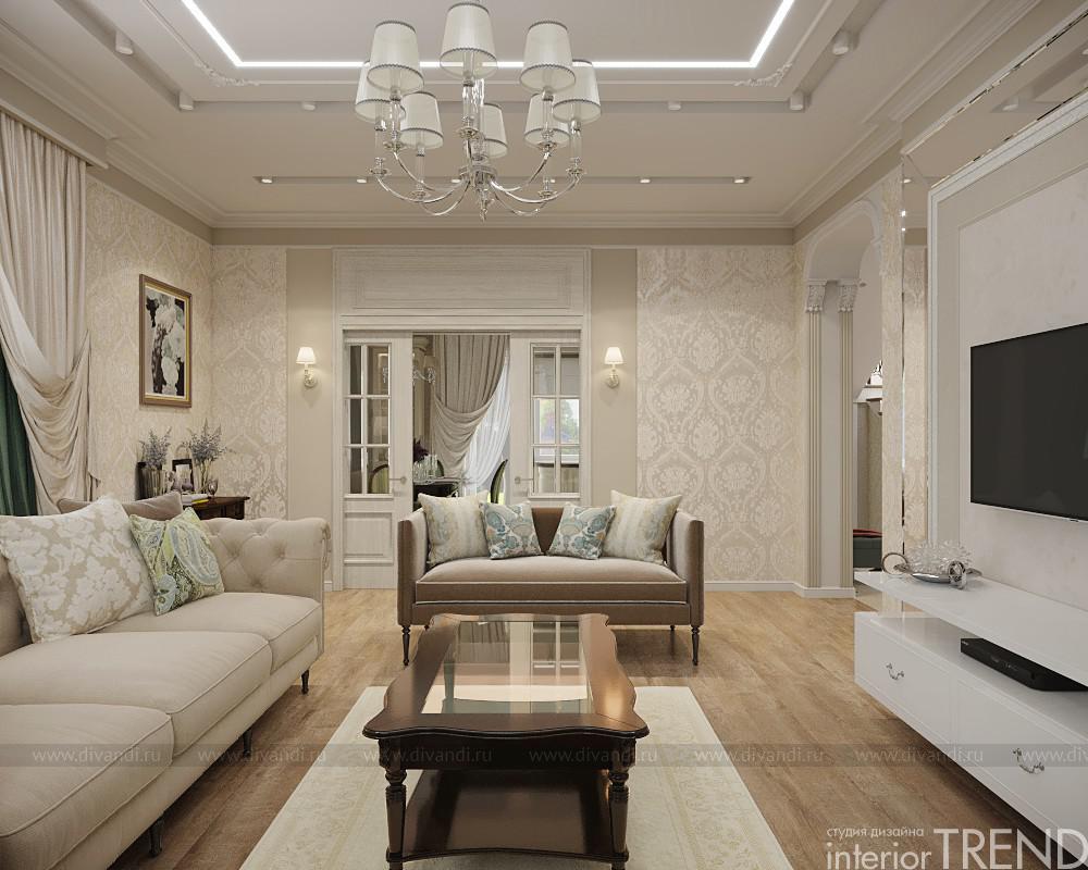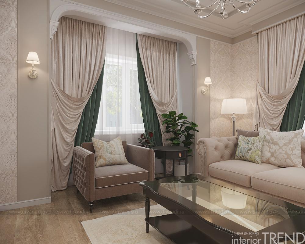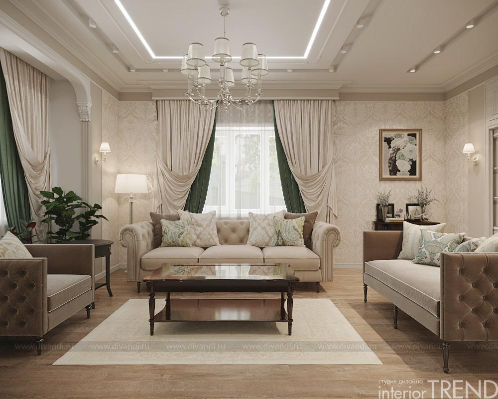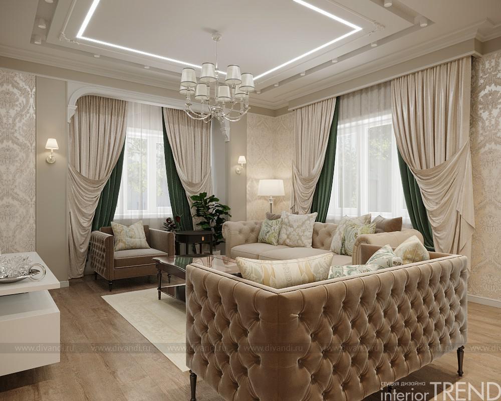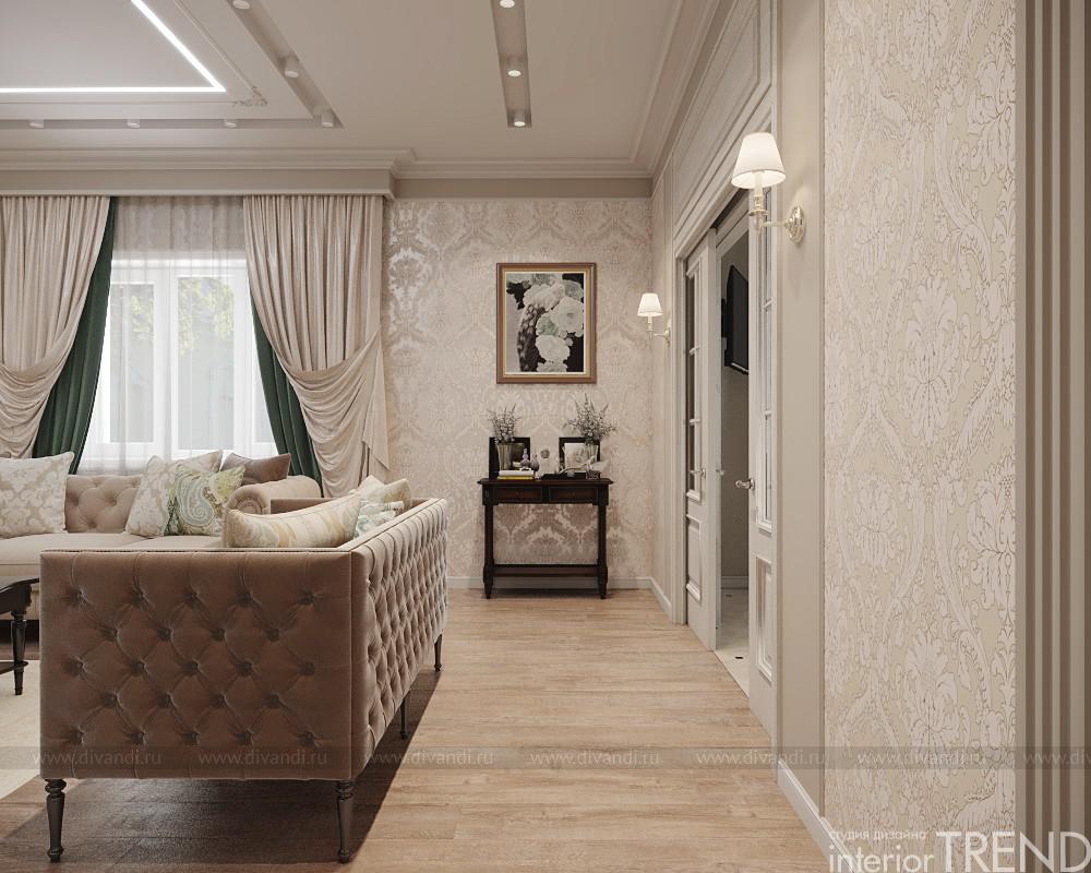 Современная гостиная с лестничным холлом для загородного дома в пос. Бобры | Modern living room with a staircase hall for a country house in the village