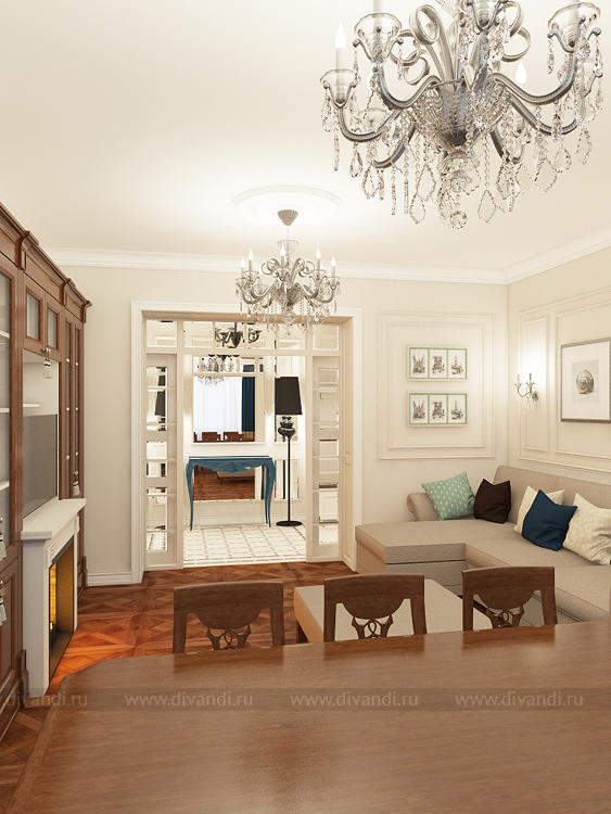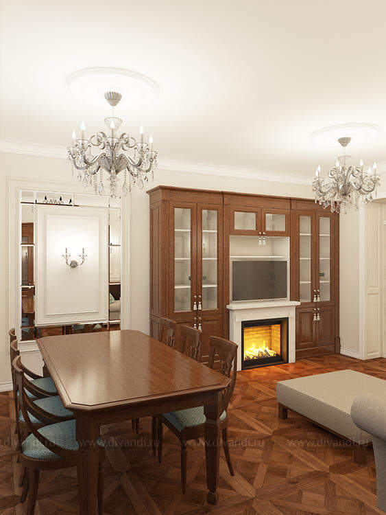 Квартира в Современной классике в доме на набережной! Мебель в гостиной уже была, клиенты решили оставить добротную итальянскую мебель купленную совсем не давно! Все удачно вписалось в новые площади гостиной! Гостиную мы разбили на зоны, зону столовой и отдыха! Центром гостиной станет электро камин со встроенным порталом в стенку! Если вам нравятся наши проекты Заказывайте у нас дизайн вашего интерьера! Звоните-286-54-78