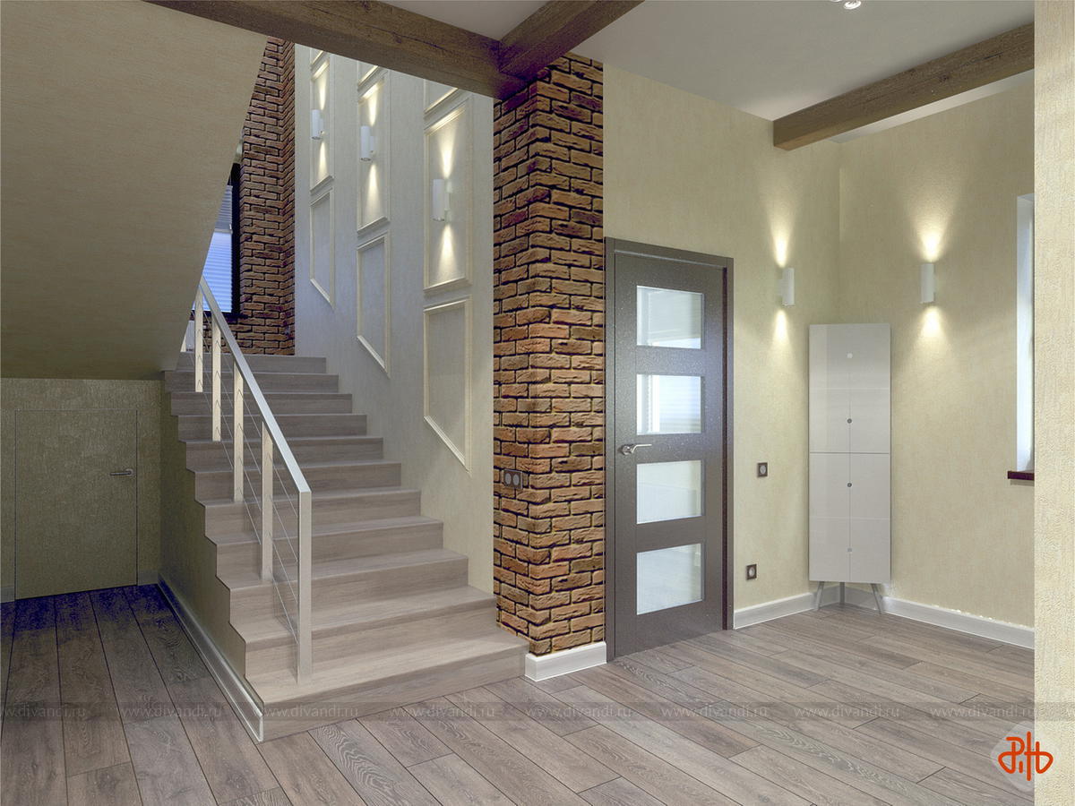 Нашей задачей стало сделать интерьер простым с использованием современных элементов, но при этом придав пространству дома некую брутальность, и в тоже время шарм европейского духа загородного дома. И эти ключевые характеристики легли в основу концепции интерьера. Сочетание современной мебели и аксессуаров с традиционными элементами отделки, таких как деревянные балки, старый кирпич и штукатурка. Среди отделочных материалов предпочтение отдавалось преимущественно натуральным.