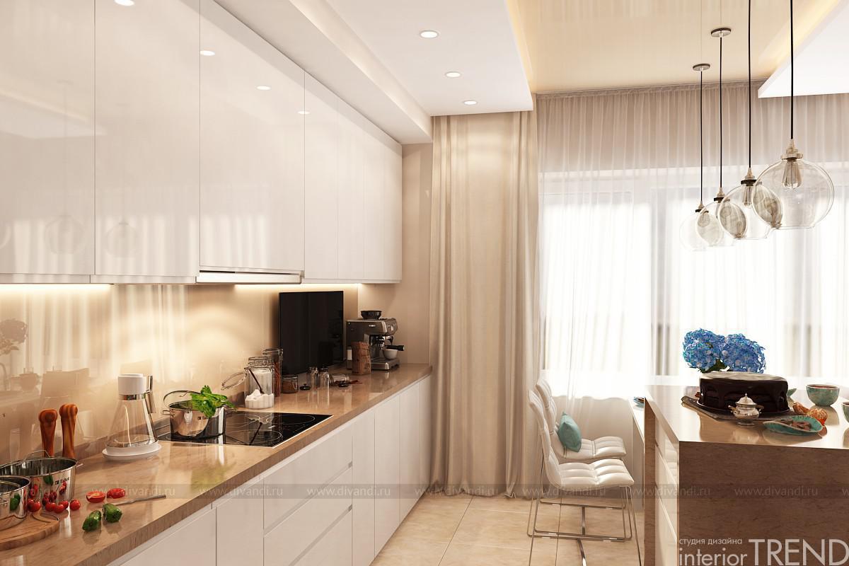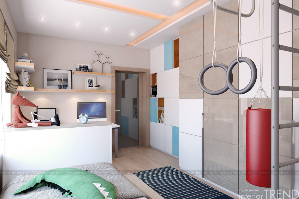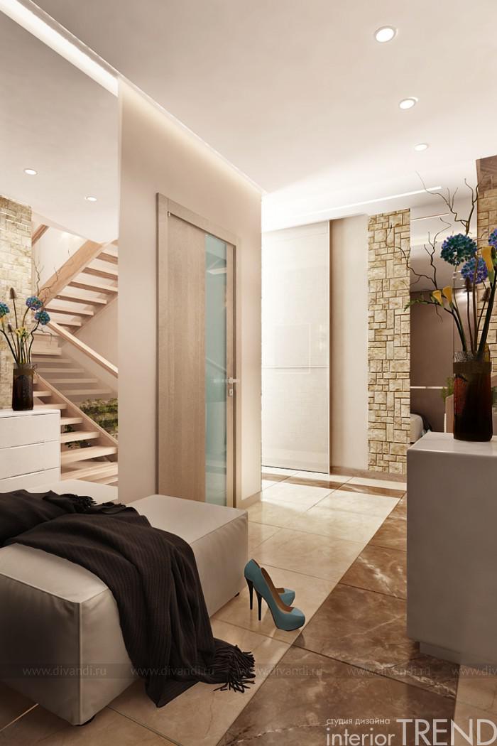 Дизайн интерьера выполнен в современном стиле, при разработке придерживались простого лаконичного дизайна, доступных и недорогих материалов в отделке.