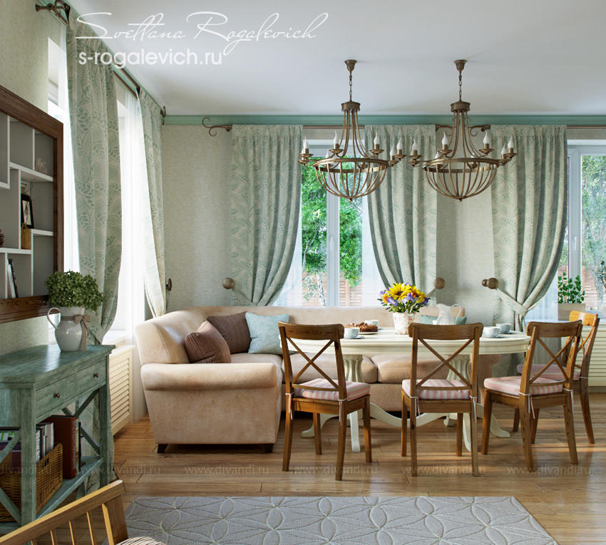 Интерьер 1-этажного коттеджа разработан для семьи из 3-х человек: родители + маленькая дочка. Заказчиков вполне устраивала планировка в приобретенном доме, поэтому она осталась без изменений. Требовалось создать непринужденную атмосферу загородного жилья, где можно было бы в полной мере отдохнуть от городской суеты.