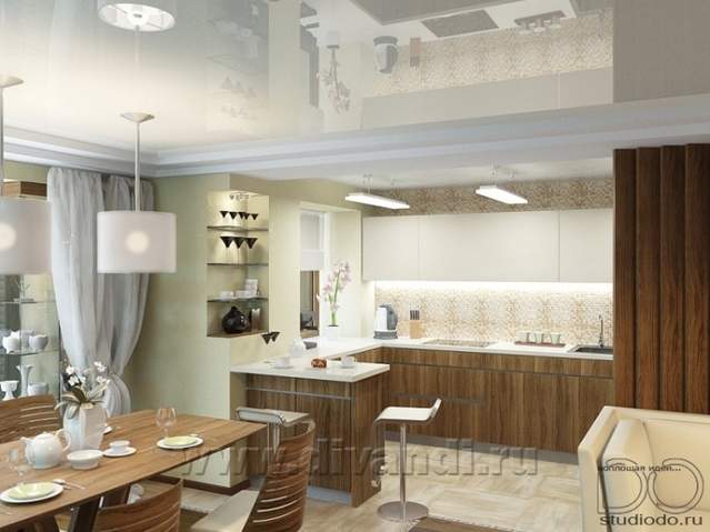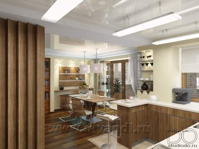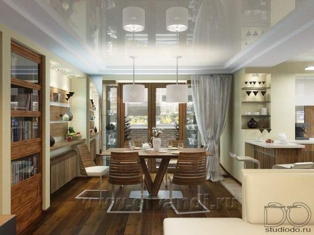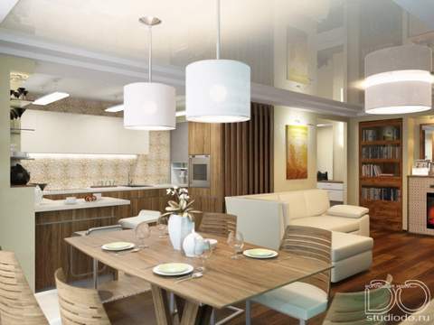 Интерьер квартиры 120м2. Перепланировка с объединением кухни и жилой комнаты (студия), увеличение оконного проёма, объединение балкона с жилой комнатой (детская), добавление гостевого сан. узла и многое другое.