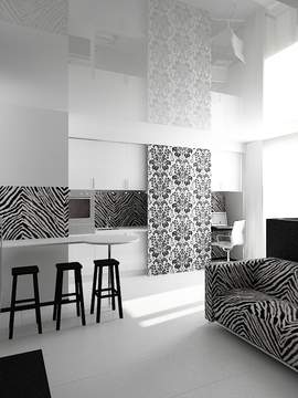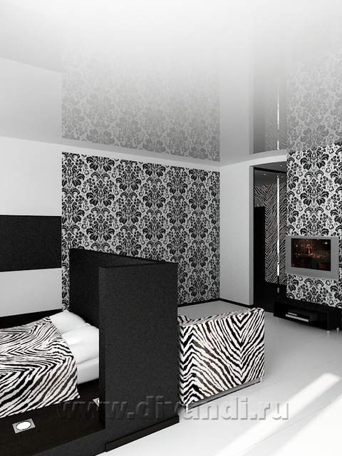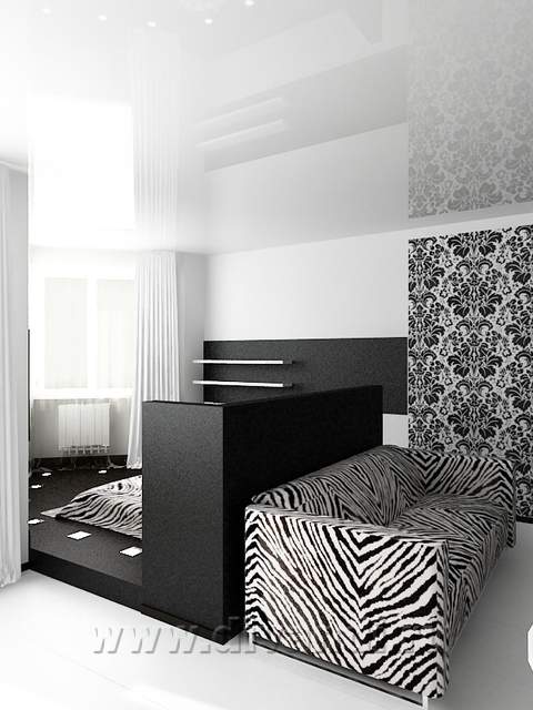 Достаточно смелое, контрастное решение оформления интерьера оправдано не продолжительным нахождением в ней жильцов.