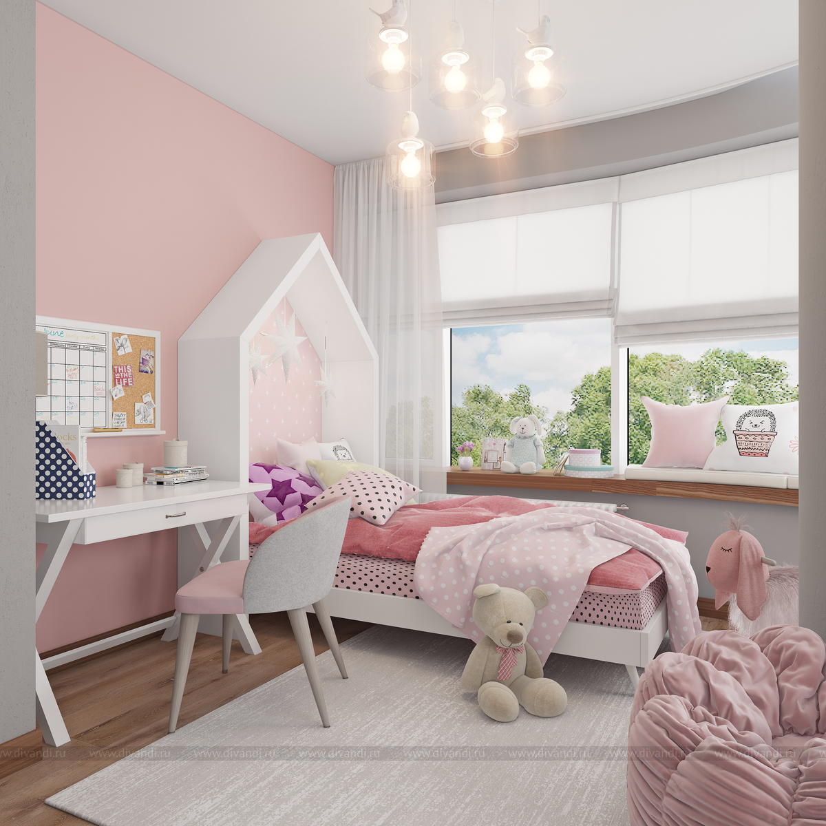 Дизайн интерьера комнаты для девочки "Фламинго"