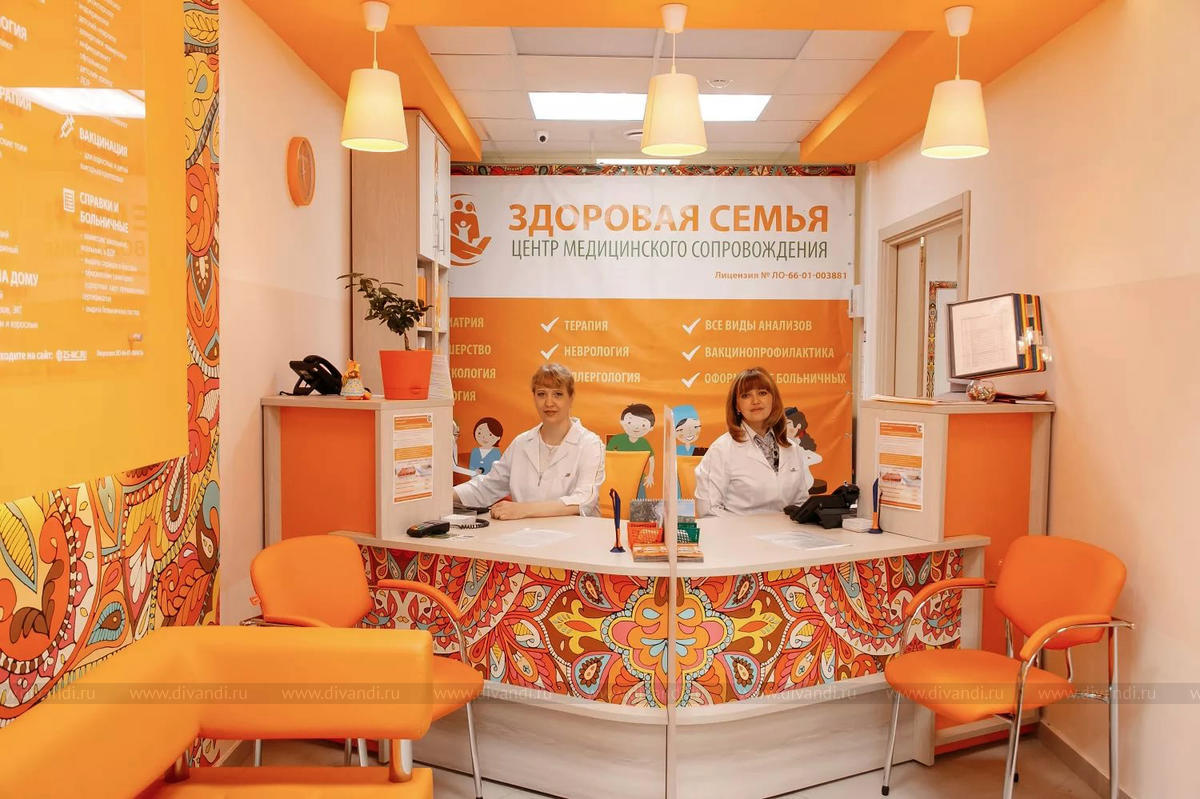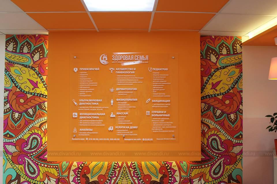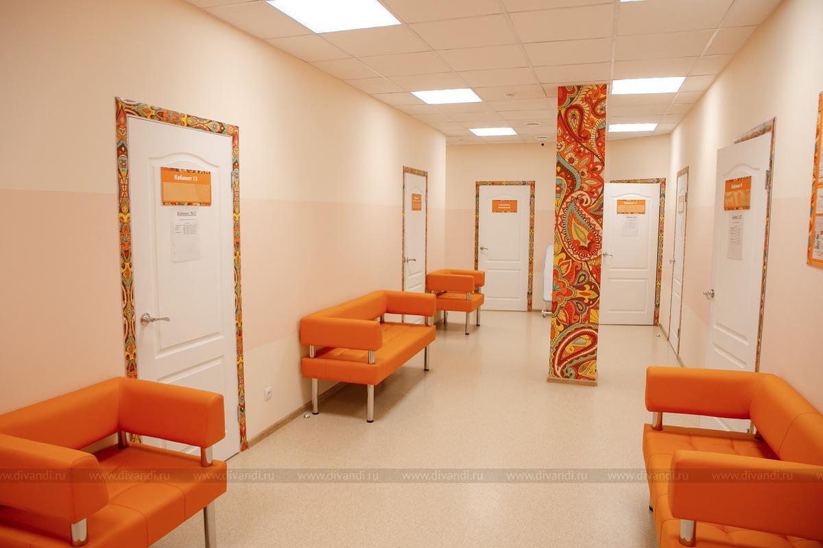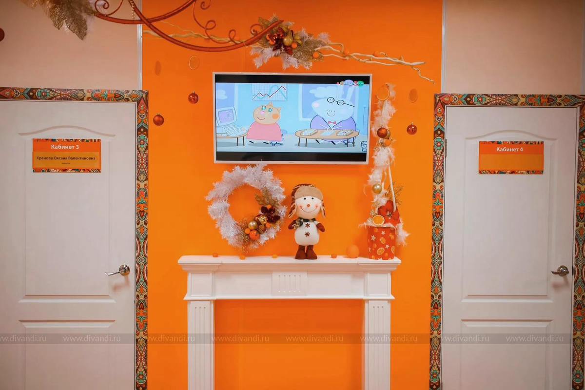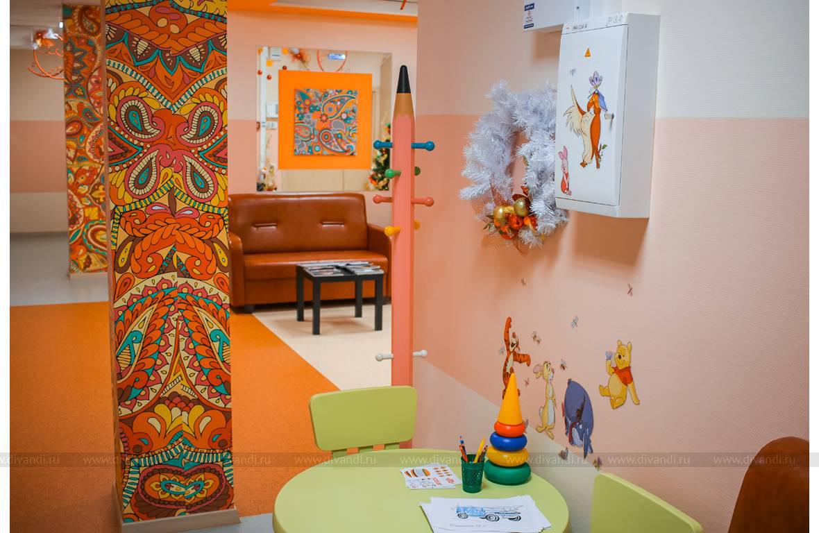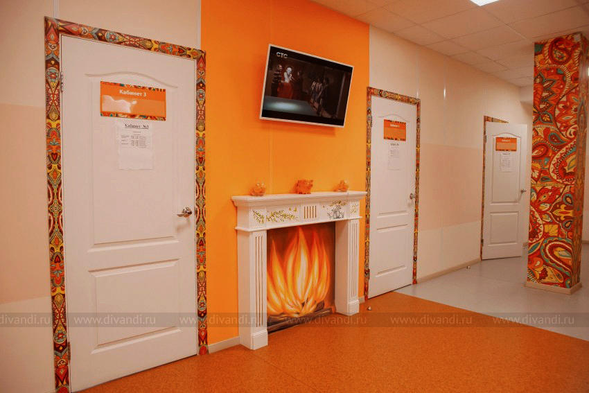 Медицинский центр наполнен яркими красками - много апельсинового оранжевого.Оранжевый цвет способствует выздоровлению и хорошему настроению.