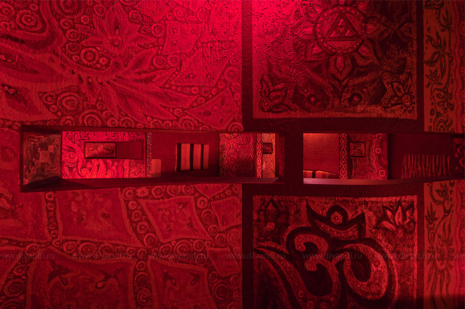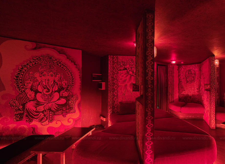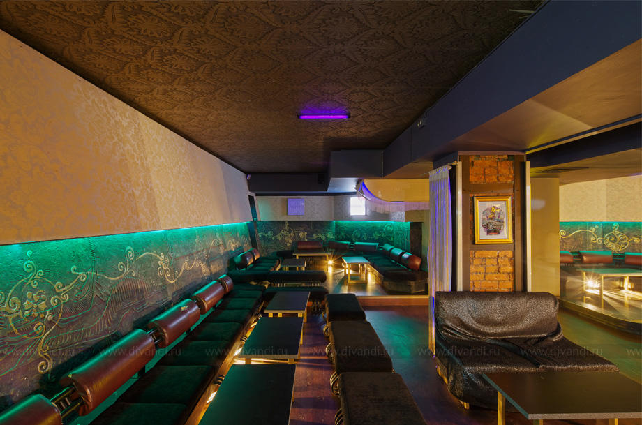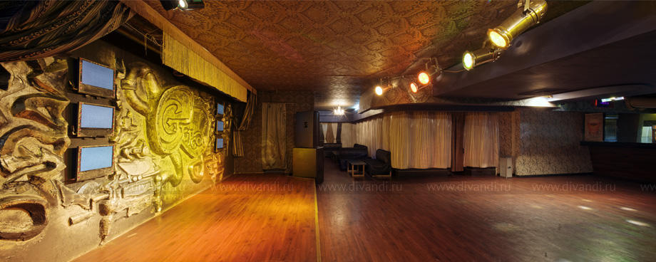 Студия Наутилус разработала дизайн интерьера для клуба «Стерео», который находится в РЦ «Водолей». Это, опять же, классический ночной клуб для молодых людей среднего достатка. В нем проводятся тематические и еженедельные вечеринки, есть все необходимые атрибуты – бар, кальяны, вип-комнаты, модные диджеи.Мы решили сделать основным акцентом этнику, но не просто взять что-то из культуры одной страны, а сделать этакий микс. Из индийской мы взяли изображения буддийских божеств и знак «Ом», у ацтеков – подсмотрели элементы для рельефа у сцены, узор потолочного покрытия мы нашли в итальянском барокко. Кстати сказать, именно на Гоа, в Индии, проходят самые известные в мире вечеринки с транс-музыкой – наш выбор не случаен.Этнические мотивы в интерьере подчеркивают цвета – золотой, темно-коричневый, красный, немного зеленого, желтый. Главным цветовым акцентом стал золотой. Интерьер клуба должен быть ярким, сверкающим, дорогим. Драпировки, обои на стенах и потолке, декор сцены, узоры по периметру стены, подсветка сцены – в клубе «Стерео» все переливается золотом.