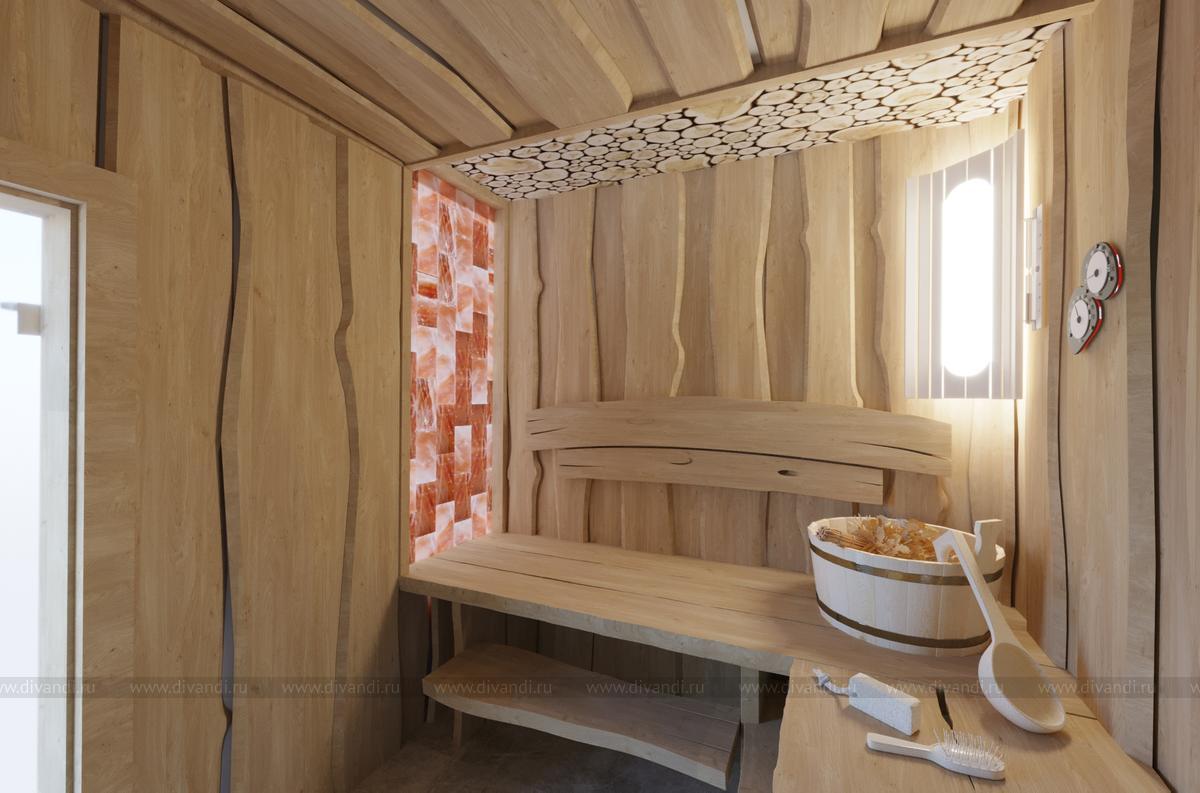 Проект интерьера парной из необрезной липы с гималайской солью и можжевеловыми спилами в "паровом кармане"