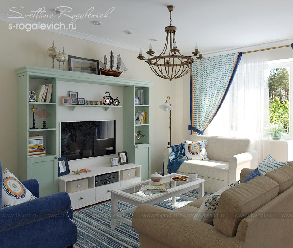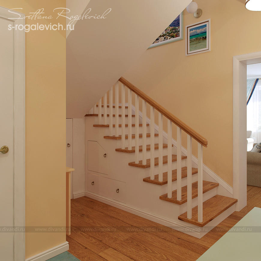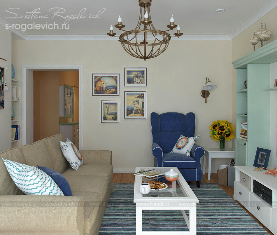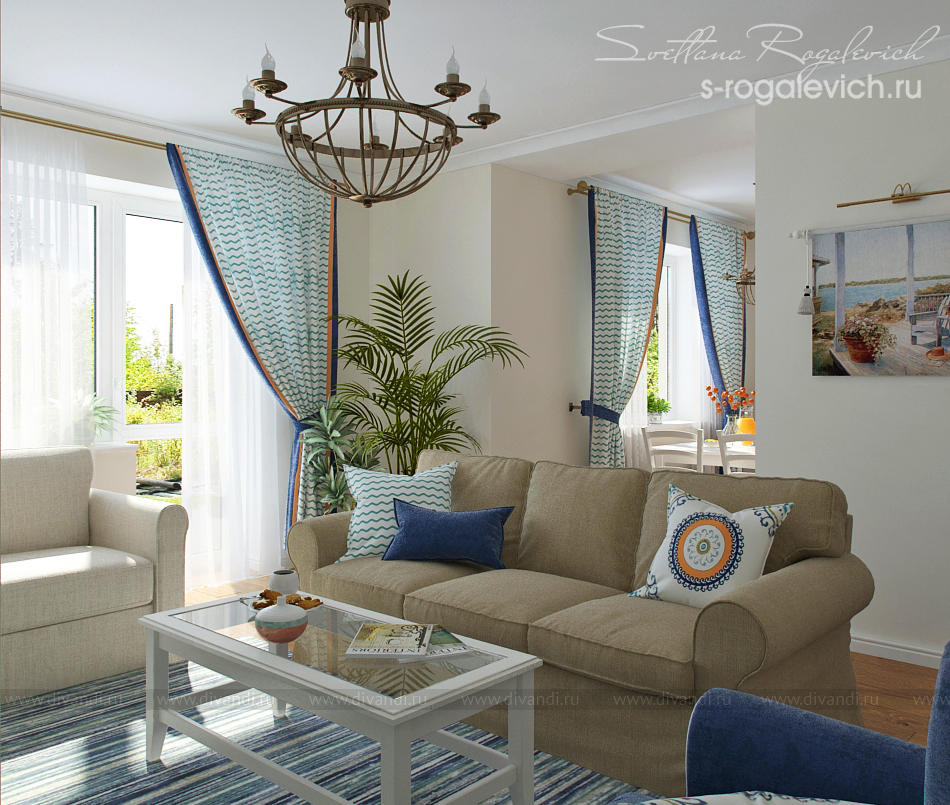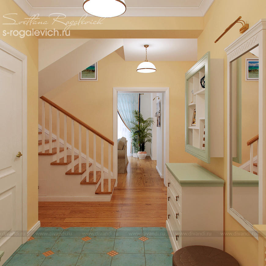 Цветовая гамма и элементы декора в большинстве помещений таунхауса отвечают пожеланию заказчиков - создать настроение отдыха на Средиземноморье. В интерьере вписаны картины и другие предметы, привезенные заказчиками из Греции.