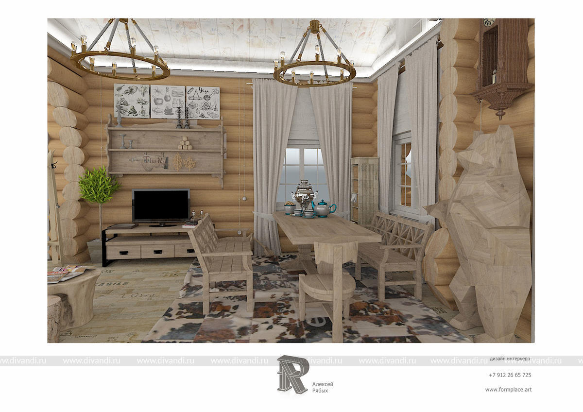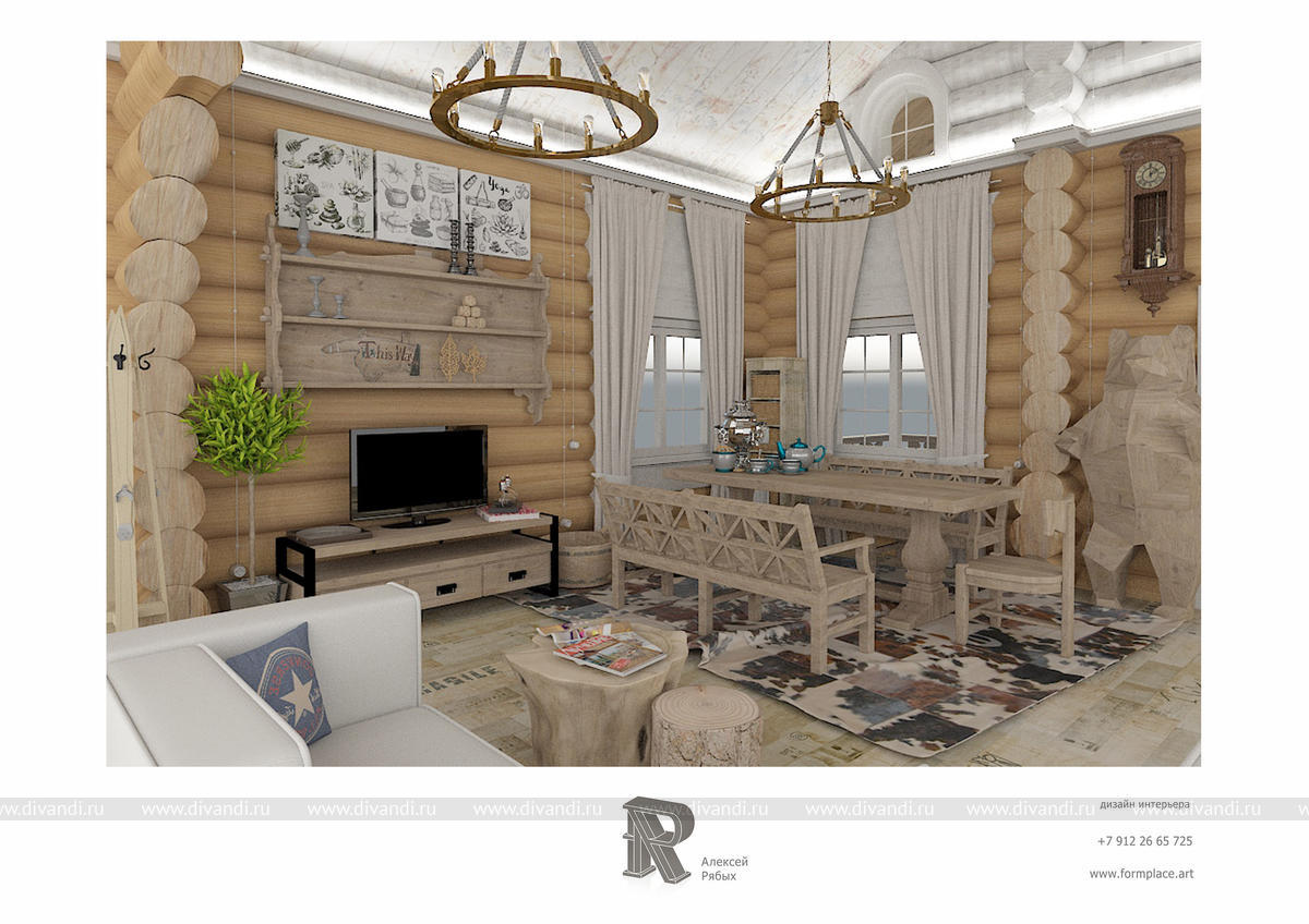 Дизайн-проект интерьера частной загородной деревянной бани