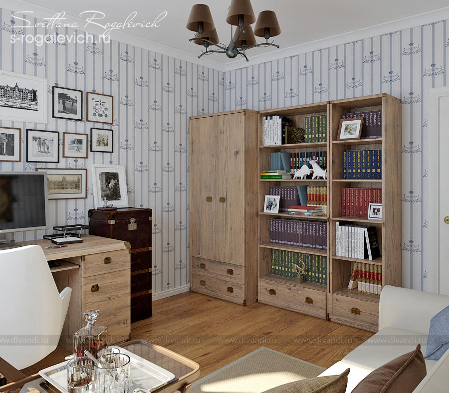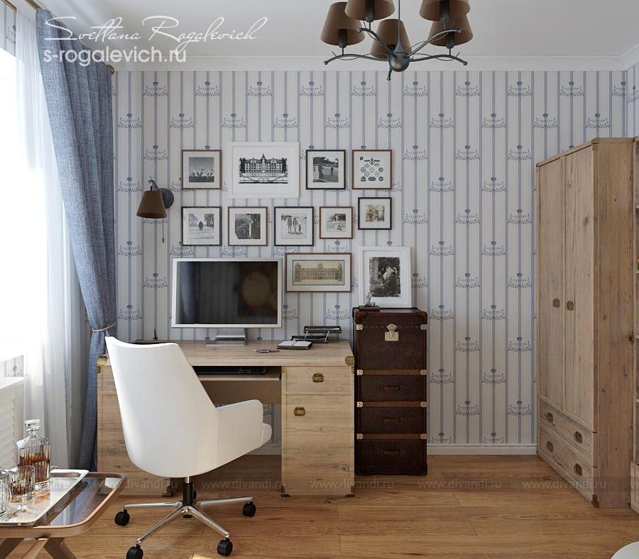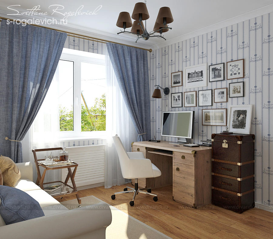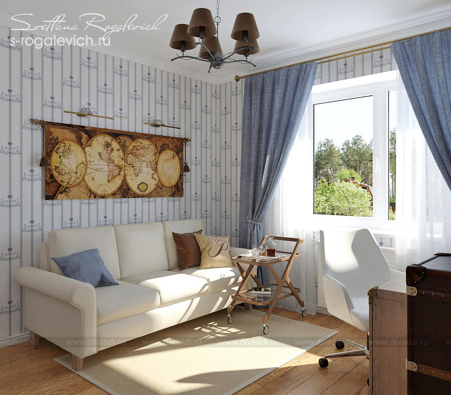 Интерьер кабинета с легким намеком на морскую тему.