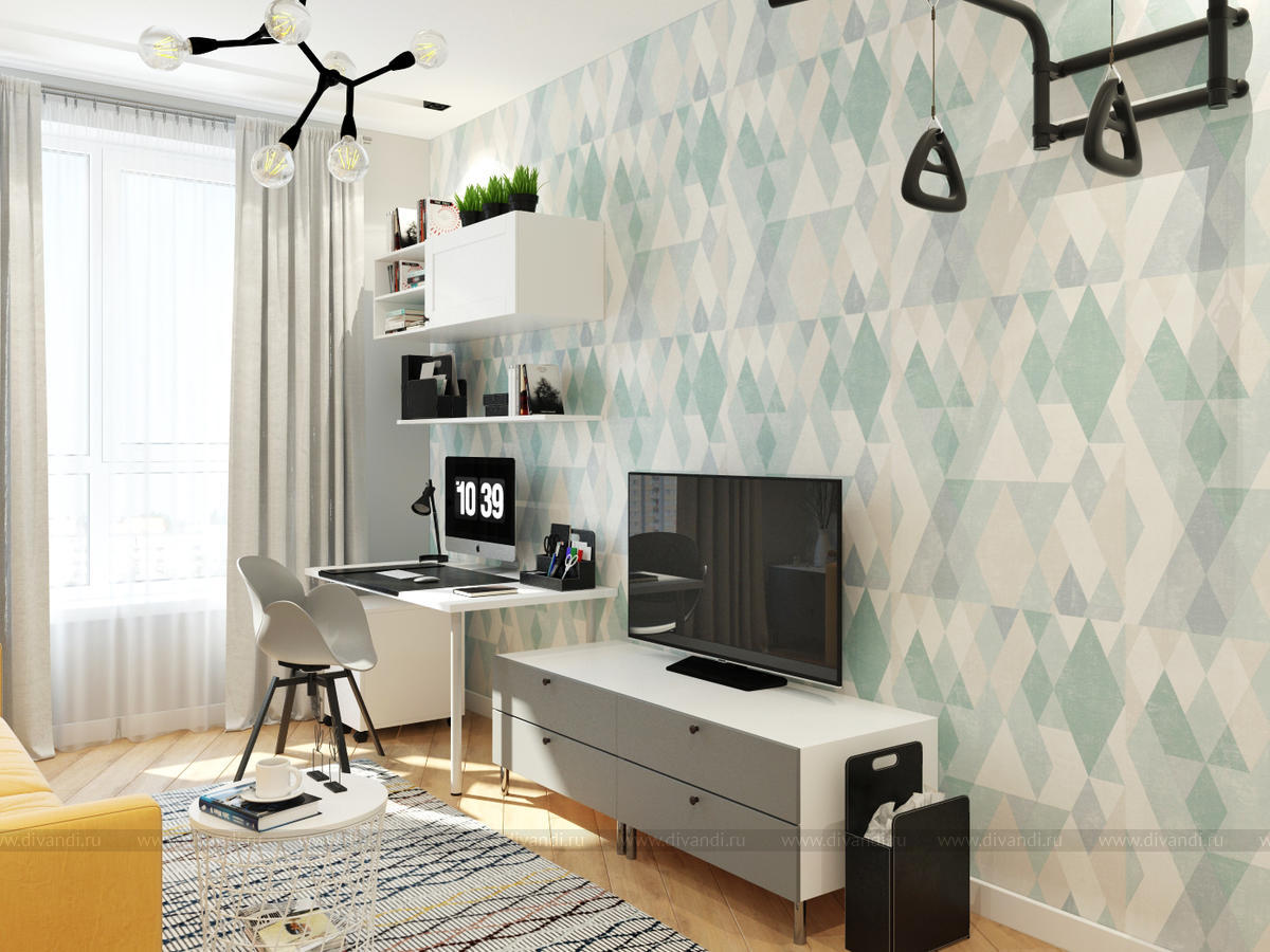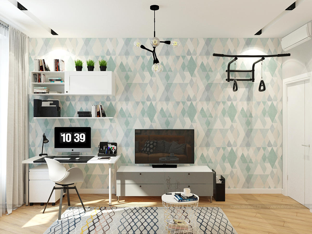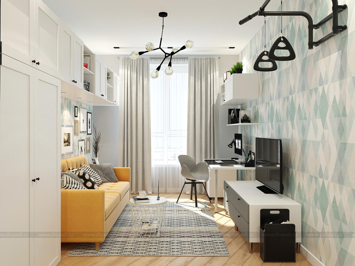 Уютный уголок в гостевой комнате в скандинавском стиле.