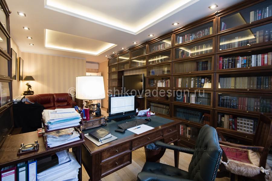 Дизайн-проект кабинета в классическом стиле. Реализованный проект.
