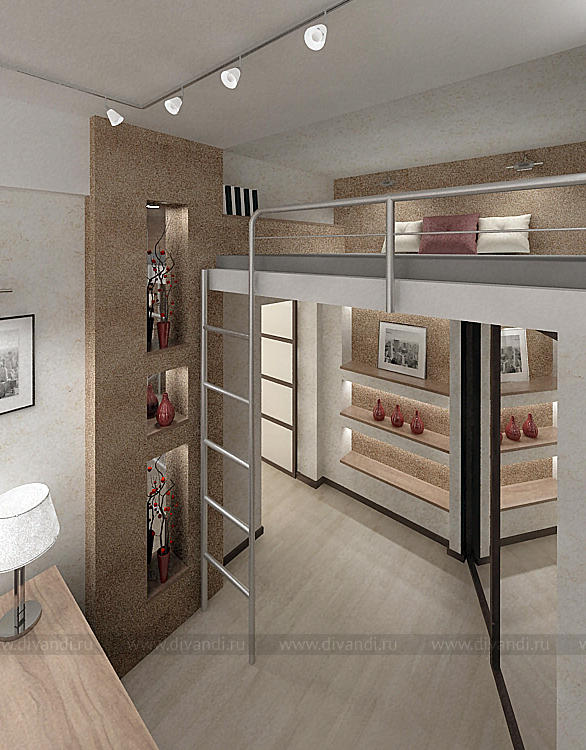 Кабинет проектировался объединенный с гардеробом и дополнительным спальным местом.