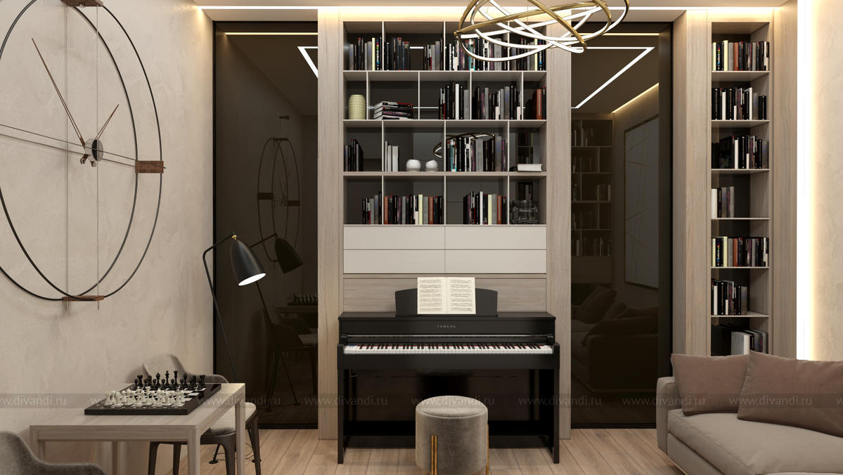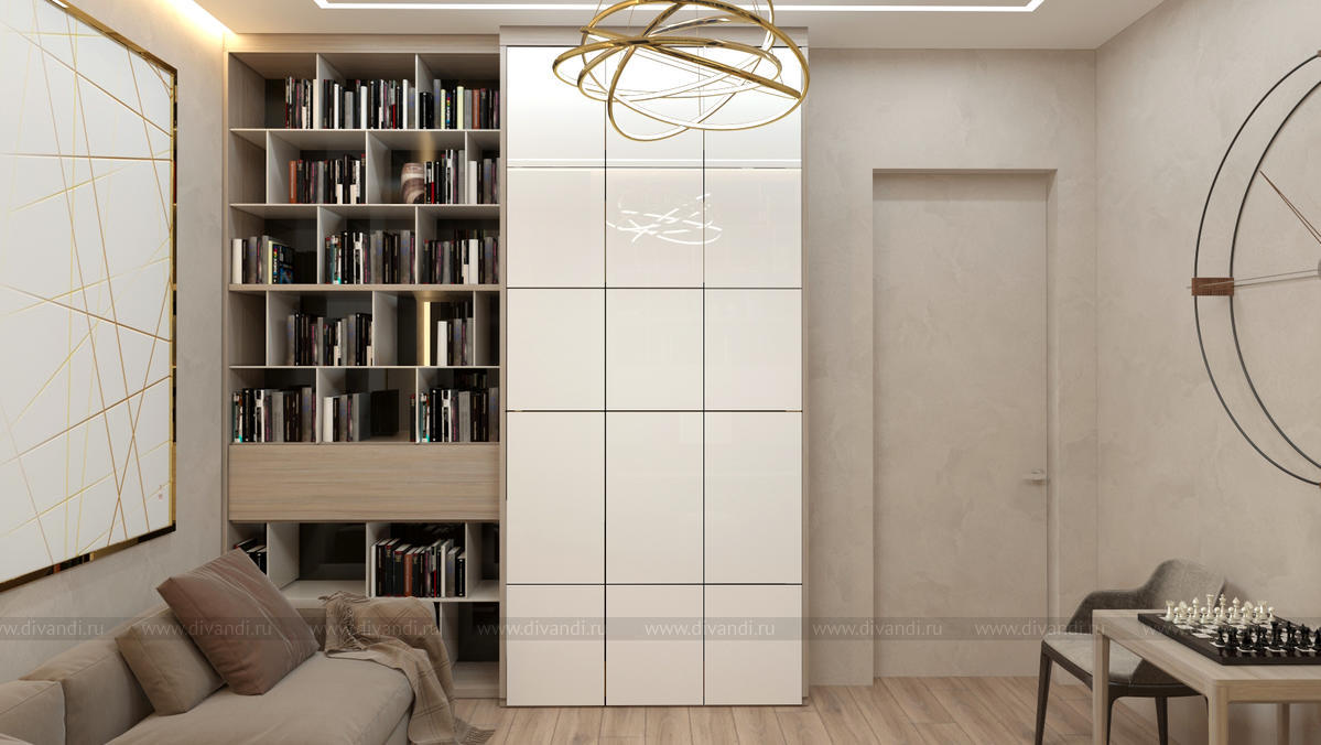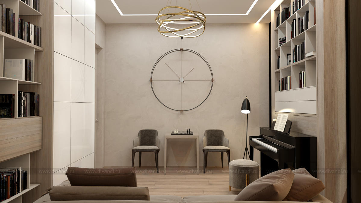 Кабинет в квартире в современном стиле, в спокойных тонах.