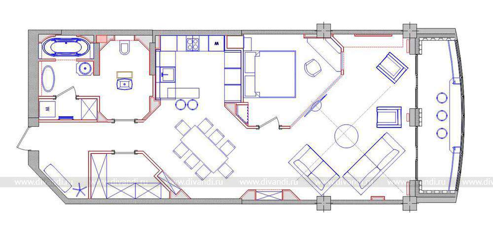 Жилые высотки Антарес – лакомый кусочек в нашем городе. Последнюю квартиру в первой высотке с шикарным видом на Зеленую рощу мои заказчики выкупали уже у первых владельцев. Да и мне поставили непростую задачу: с одной стороны, самый шикарный стиль - Ар Деко, с другой, очень сложная задача по планировке – вытянутое помещение, шириной всего 6 метров, с 2-мя окнами по дальней узкой стороне, а хочется ведь и спальню с окном, и большую, хорошо освещенную гостиную. Но все решаемо!