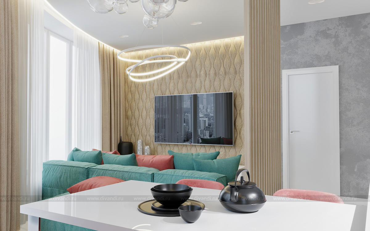 [Карамель] Гостиная-кухня в ЖК "Форум Сити"