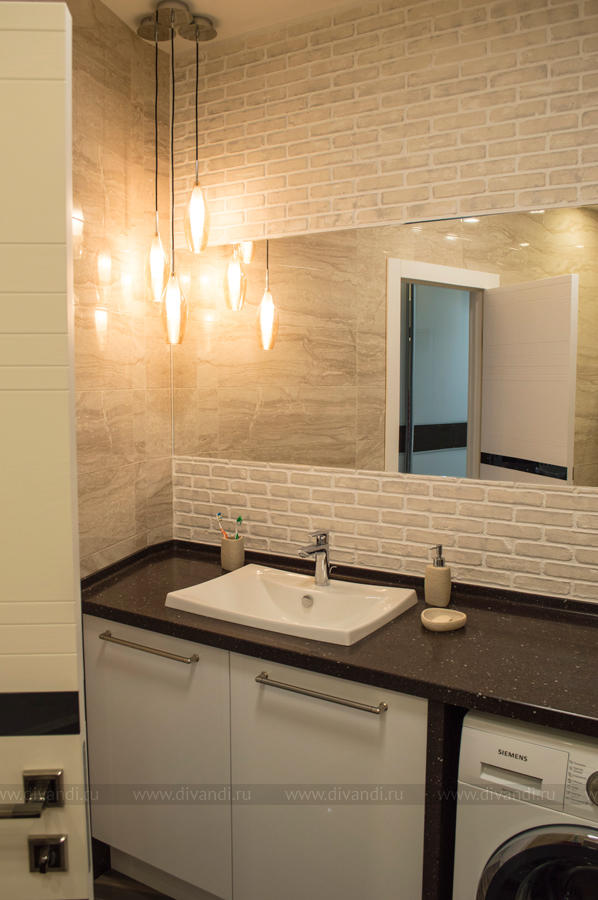 Декоративная штукатурка с антивандальным покрытием в интерьере ванной комнаты. Квартира в ЖК "Монте Кристо"